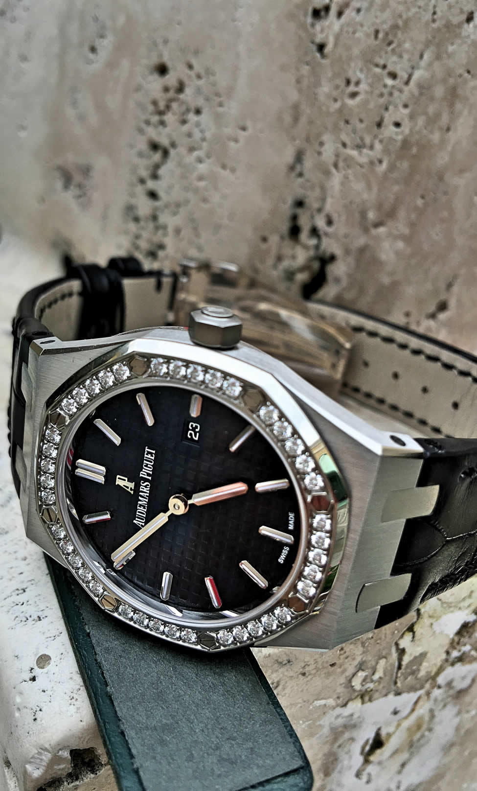 - This timepiece features a 42mm steel and diamonds case paired with a high quality It showcases a distinctive anthracite dial and is powered by a precise quartz winding movement. The watch is designed with a water resistance of up to 50M.