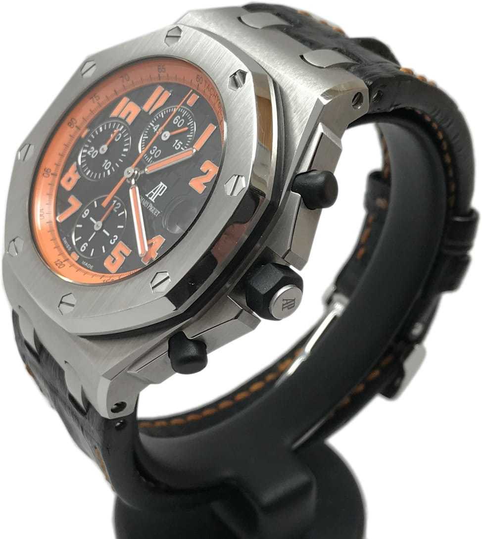 - This timepiece features a 42mm steel case paired with a high quality leather strap. It showcases a distinctive black and orange dial and is powered by a precise automatic winding movement. The watch is designed with a water resistance of up to 100M.