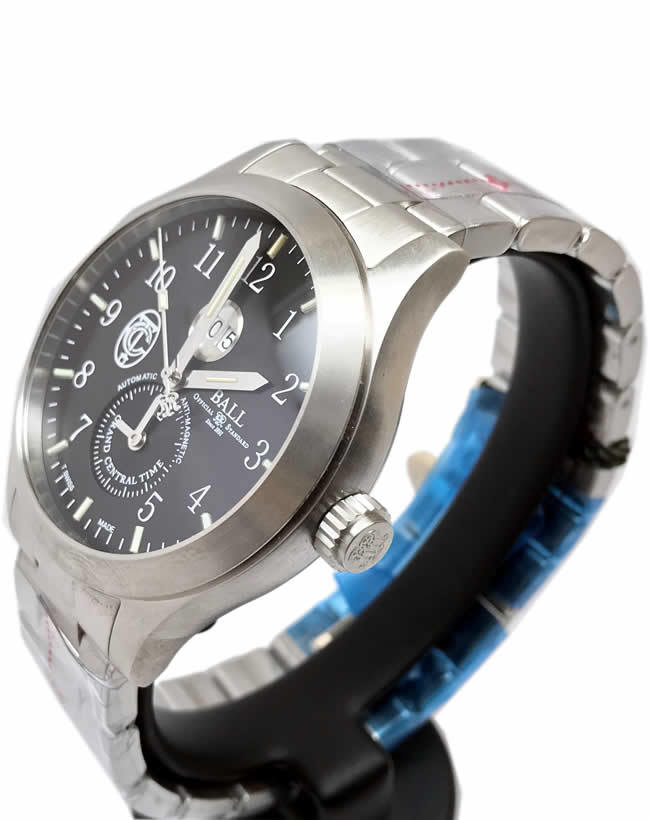 - This timepiece features a 44mm steel case paired with a high quality steel bracelet. It showcases a distinctive black dial and is powered by a precise automatic winding movement. The watch is designed with a water resistance of up to 100M.
