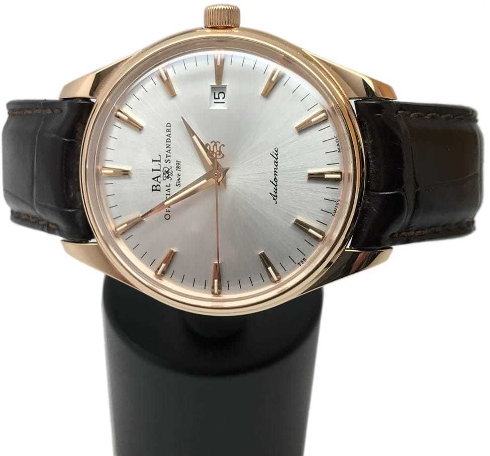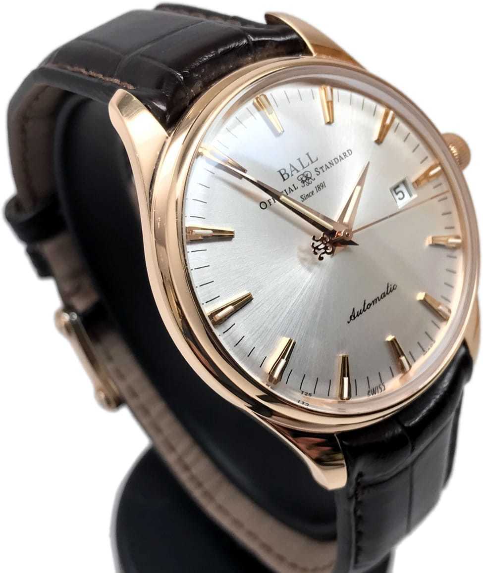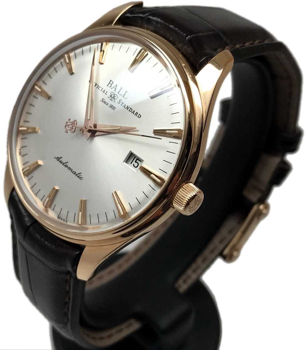 - This timepiece features a 39mm gold case paired with a high quality leather strap. It showcases a distinctive silver dial and is powered by a precise automatic winding movement. The watch is designed with a water resistance of up to 50M.