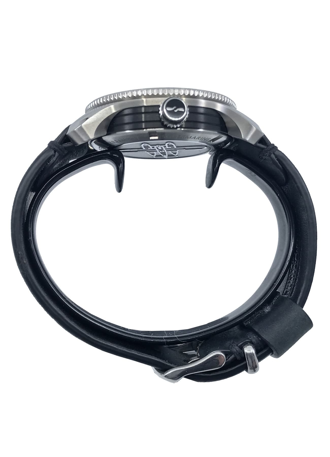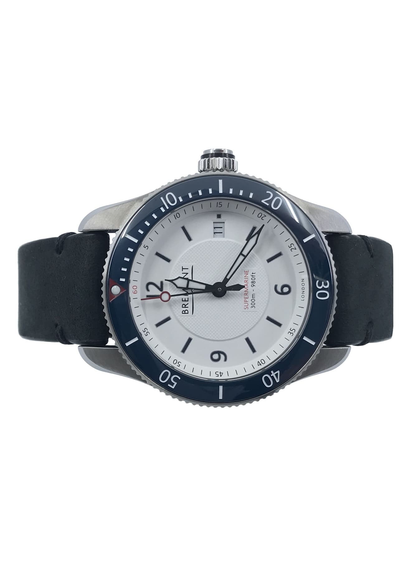 - This timepiece features a 40mm steel case paired with a high quality leather strap. It showcases a distinctive white dial and is powered by a precise automatic winding movement. The watch is designed with a water resistance of up to 300m.