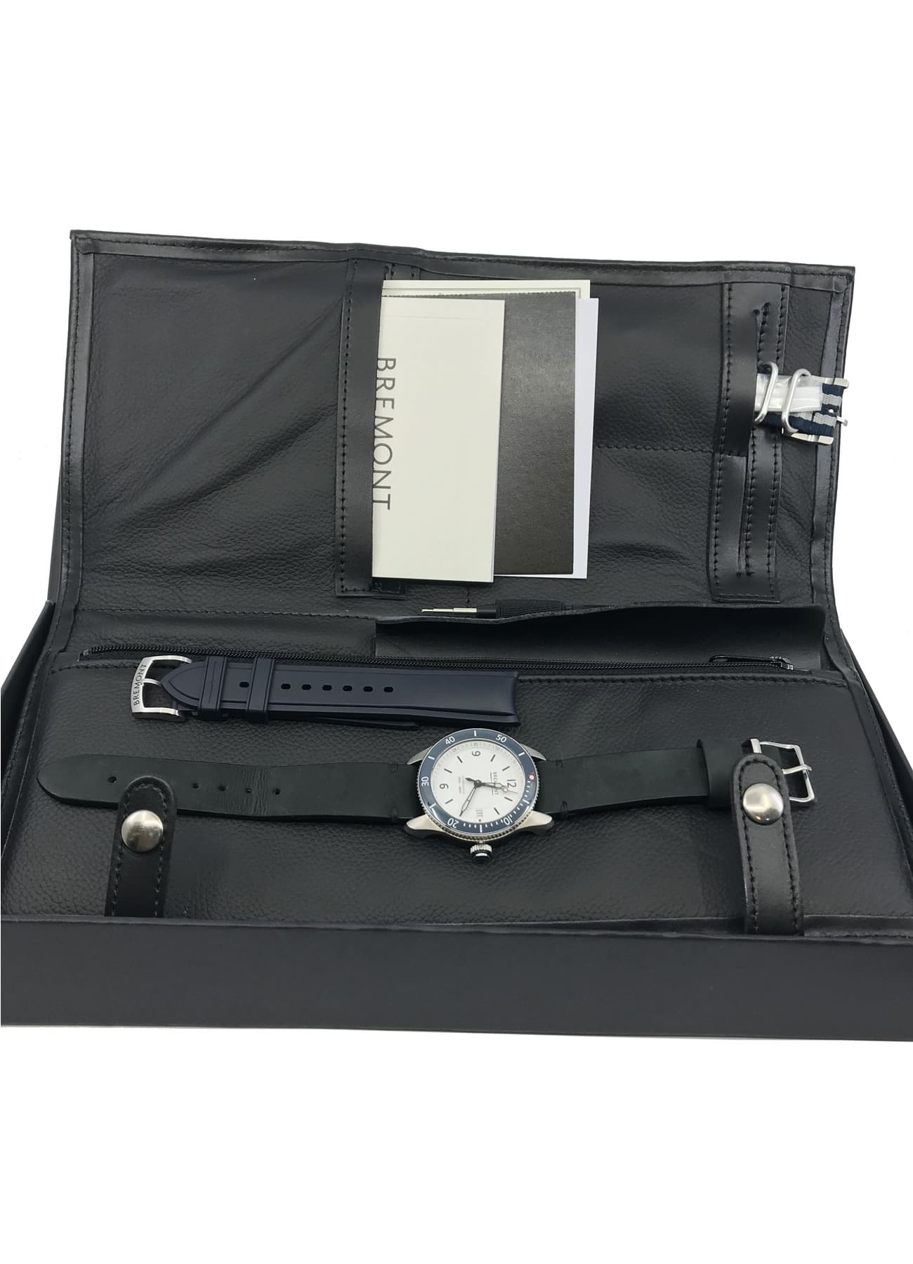 Modified calibre 11 ½ BE-92AE automatic chronometer fitted with Bremont decorated rotor and 21 jewels, Glucydur balance and Anachron balance spring, with Nivaflex 1 mainspring. Rated frequency of 2