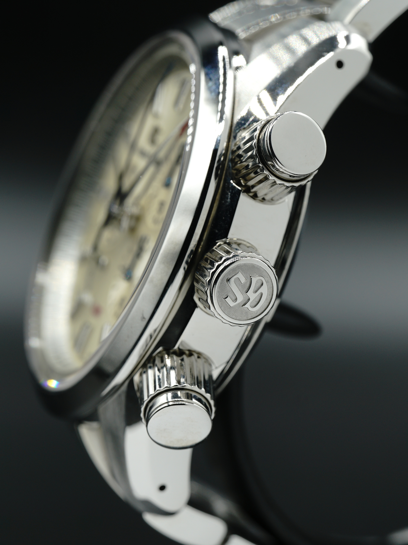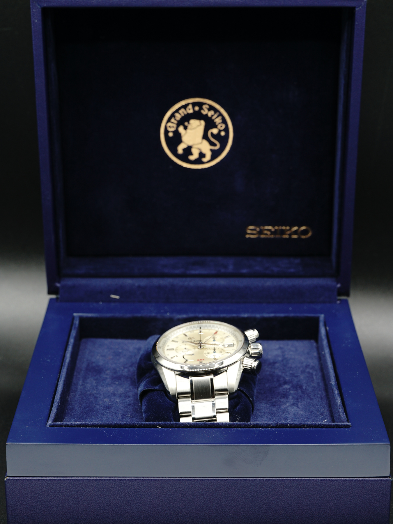 This is a pre-owned timepiece. This Grand Seiko is in EXCELLENT condition. This is Grand Seiko's very first chronograph. This model is powered by Grand Seiko's unique Spring Drive caliber, which combines the motive force of a mainspring with the high precision of a quartz watch. This watch includes its original box, papers, and certificate of limited warranty dated for July 2017.