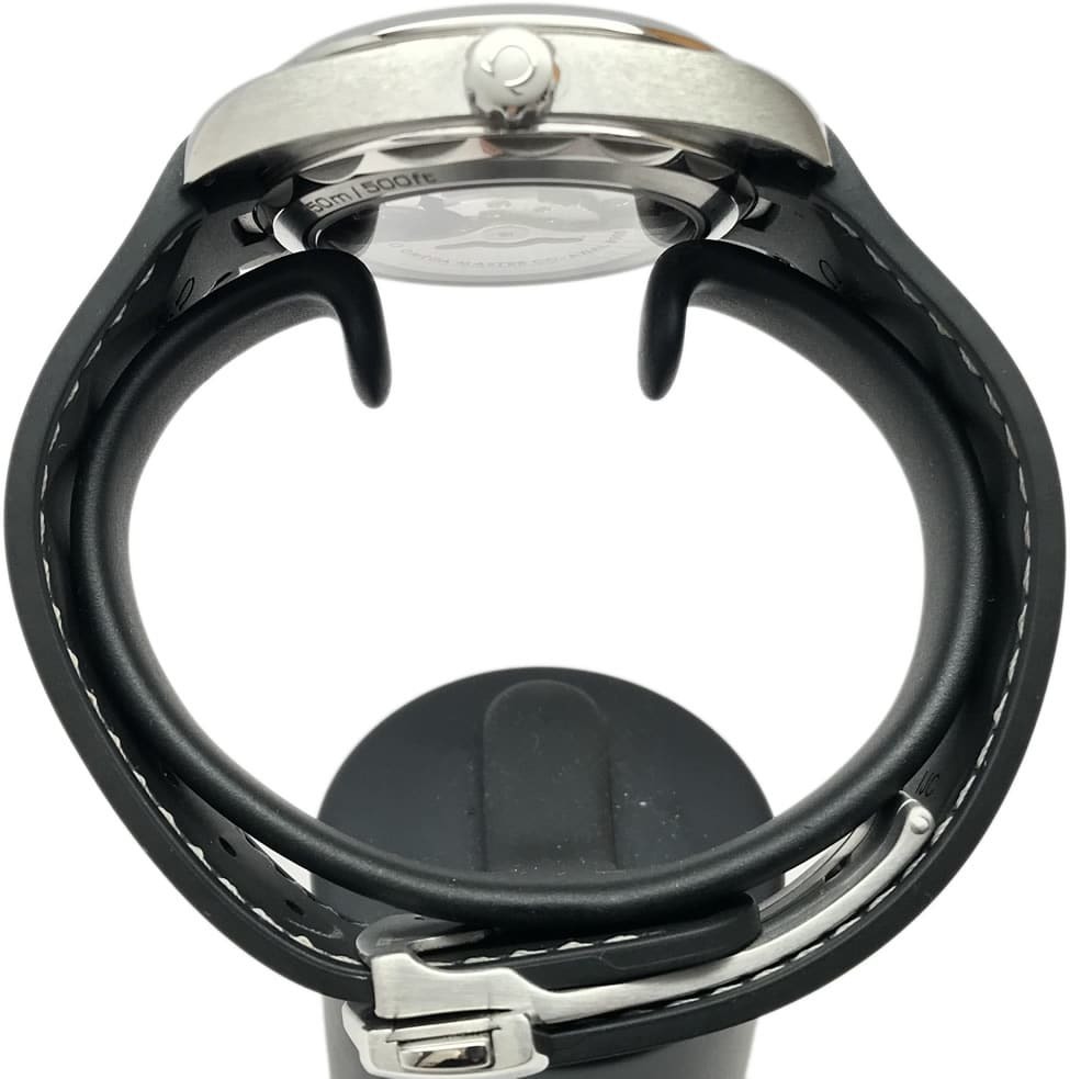 The black strap is made from structured rubber and includes grey lining and an additional stainless steel link which integrates it to the case. This certified chronometer is powered by the OMEGA Master Chronometer calibre 8900, certified at the industry’s highest standard by the Swiss Federal Institute of Metrology (METAS).