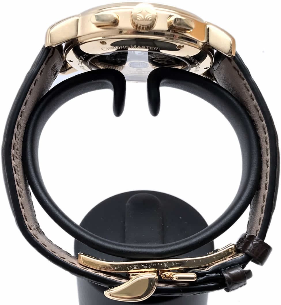 - This timepiece features a 42mm gold case paired with a high quality leather strap. It showcases a distinctive silver dial and is powered by a precise automatic winding movement. The watch is designed with a water resistance of up to 30M.