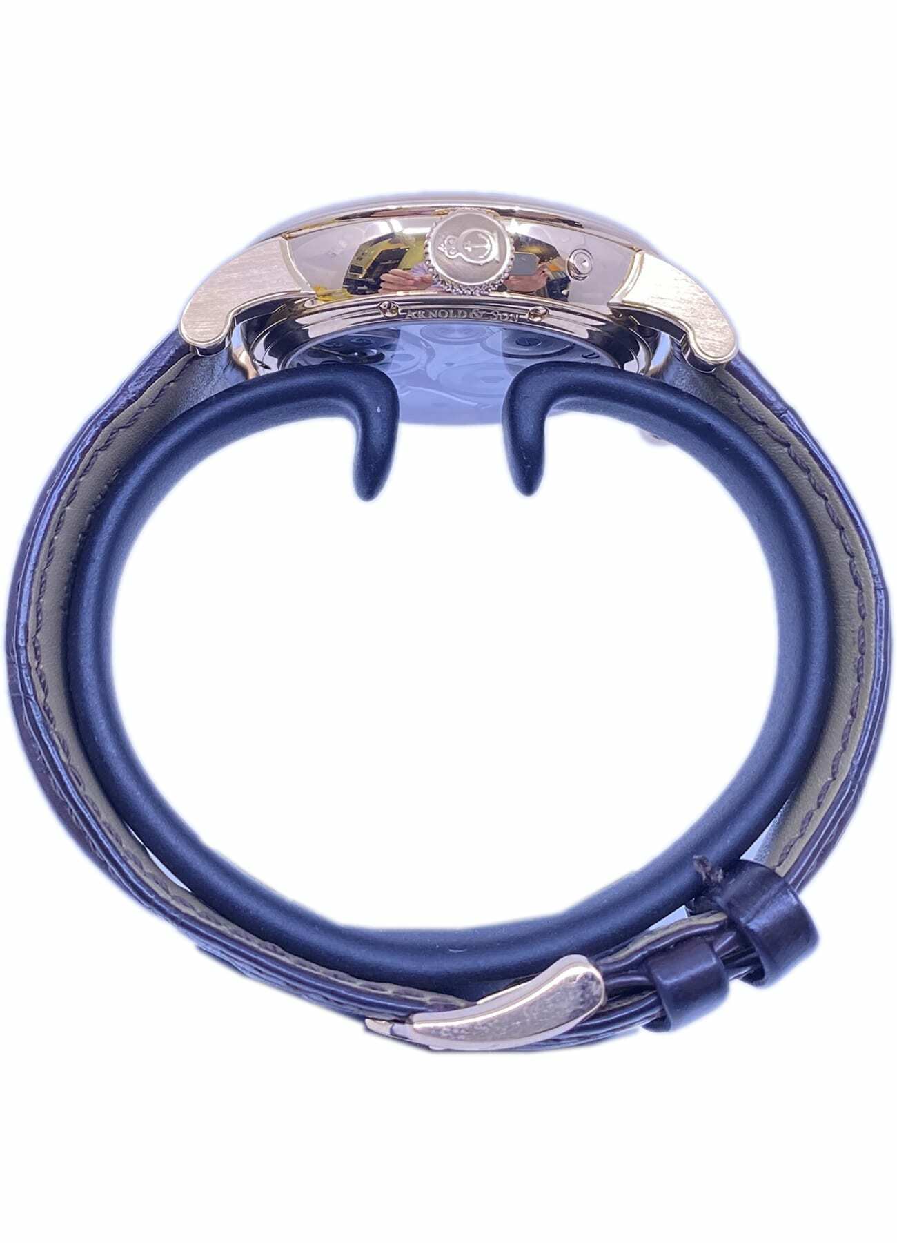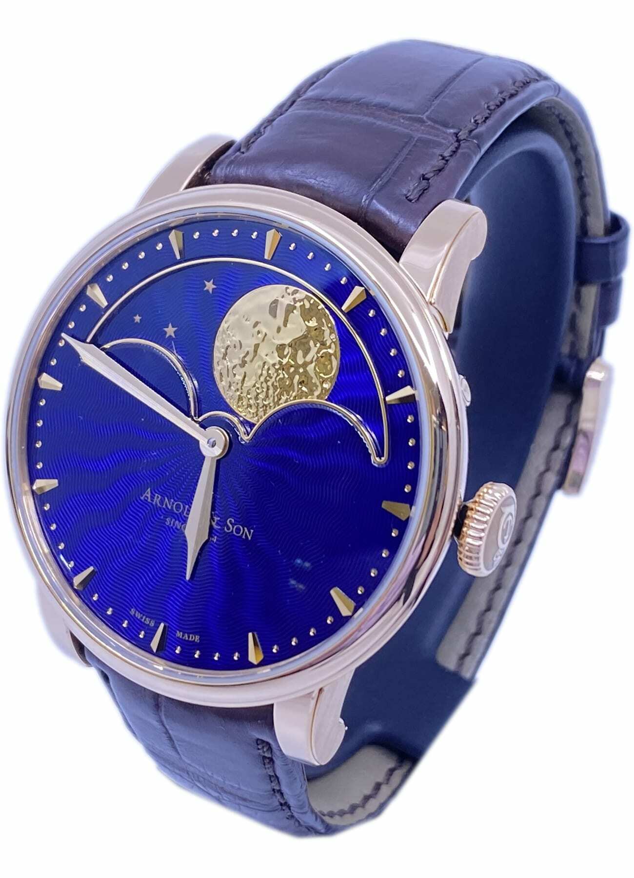 - This timepiece features a 42mm gold case paired with a high quality leather strap. It showcases a distinctive blue dial and is powered by a precise manual winding movement. The watch is designed with a water resistance of up to 30M.