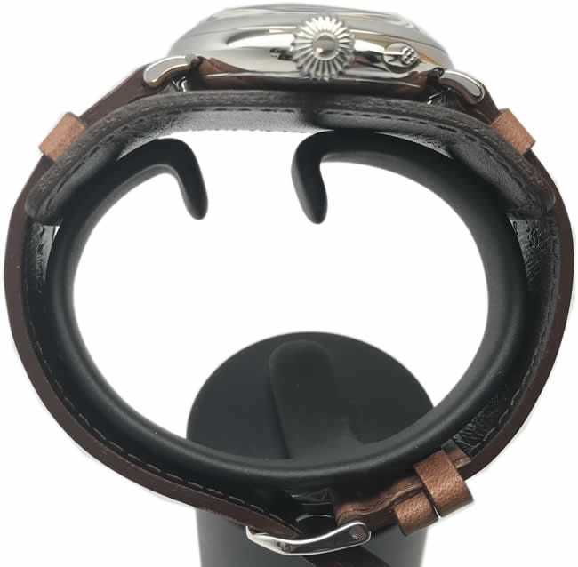 - This timepiece features a 40mm steel case paired with a high quality leather strap. It showcases a distinctive silver dial and is powered by a precise automatic winding movement. The watch is designed with a water resistance of up to 50M.