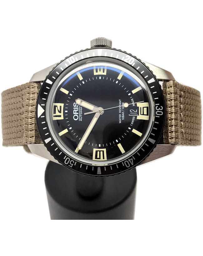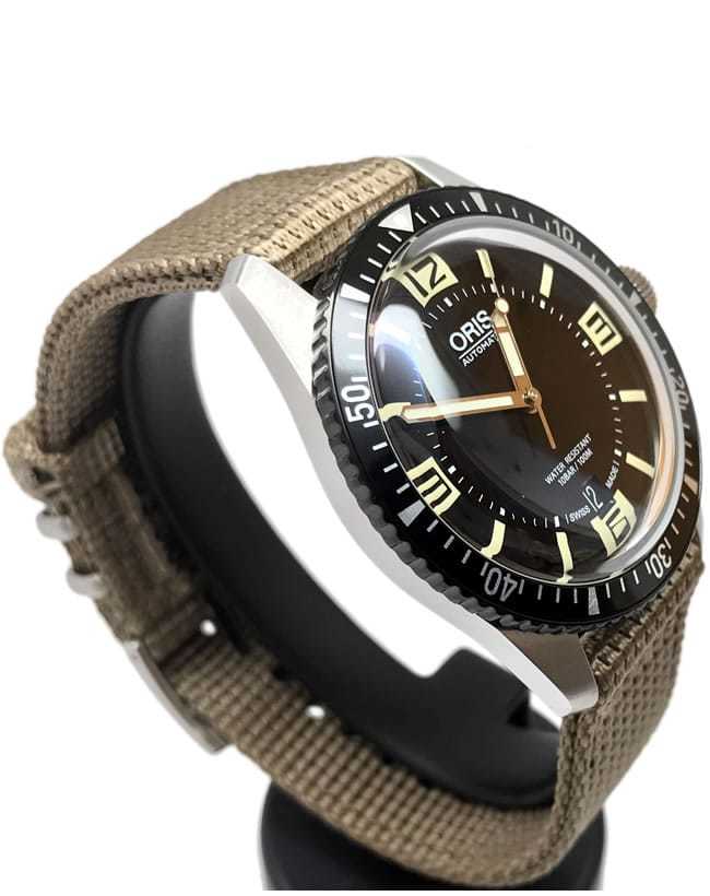 Oris has dived back in time and is delighted to present the Oris Divers Sixty-Five - a revival of an iconic diver's watch that first appeared in the Oris collection 50 years ago. The new Oris Divers Sixty-Five shares the retro looks of the 1960s original, but it's been modernised using 21st century watchmaking techniques. The case is now a more contemporary 40mm in diameter, and it's made of anti-corrosive stainless steel. The vintage-inspired bubble-curved glass is made of scratch-resistant sapphire crystal and comes with anti-reflective coating on the inside to reduce glare and increase legibility underwater.