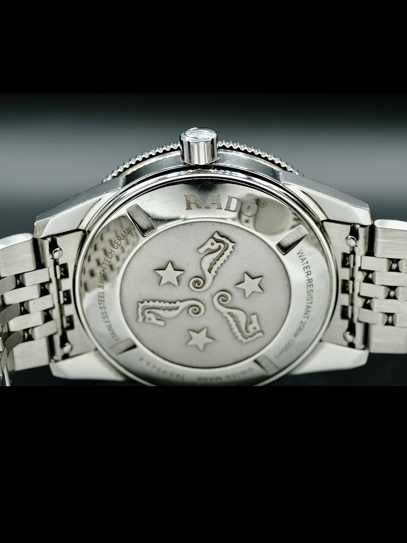 Automatic movement powered by Rado Calibre 07.611 for a power reserve of approximately 80 hours. Water resistance up to 200 meters.