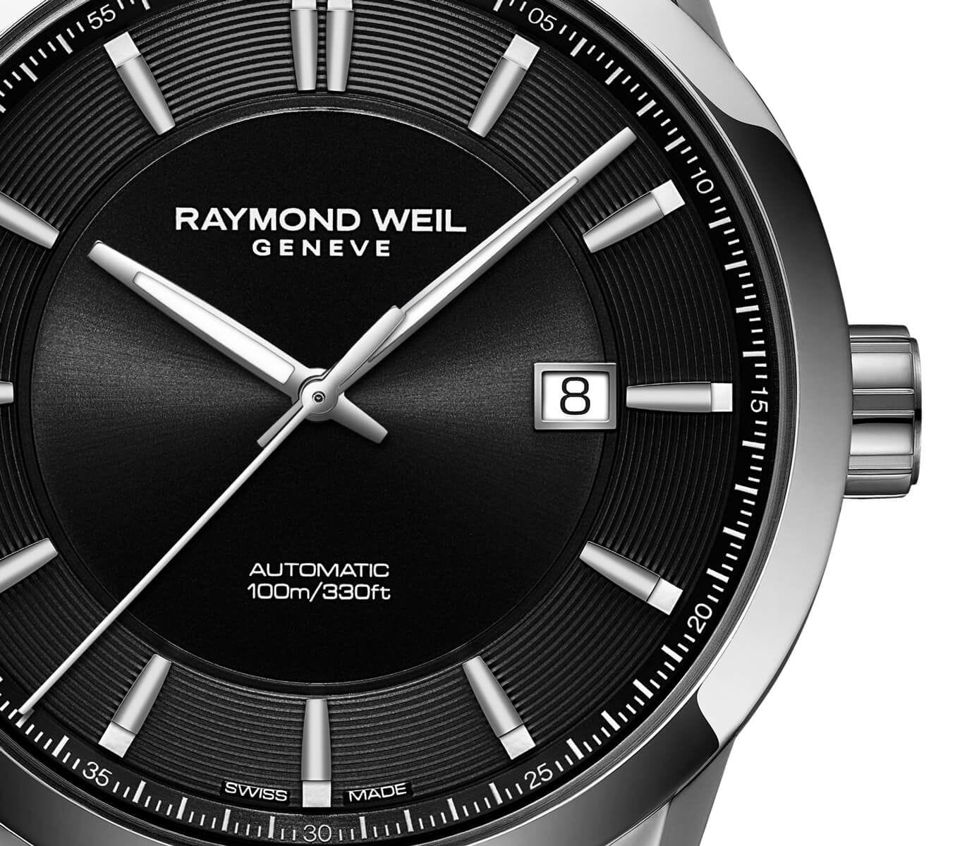 This stainless steel bracelet with a double-push security system folding clasp and screwed-down crown embossed with the Brand’s signature RW monogram adds a touch of refinement and classicism to this automatic date watch.