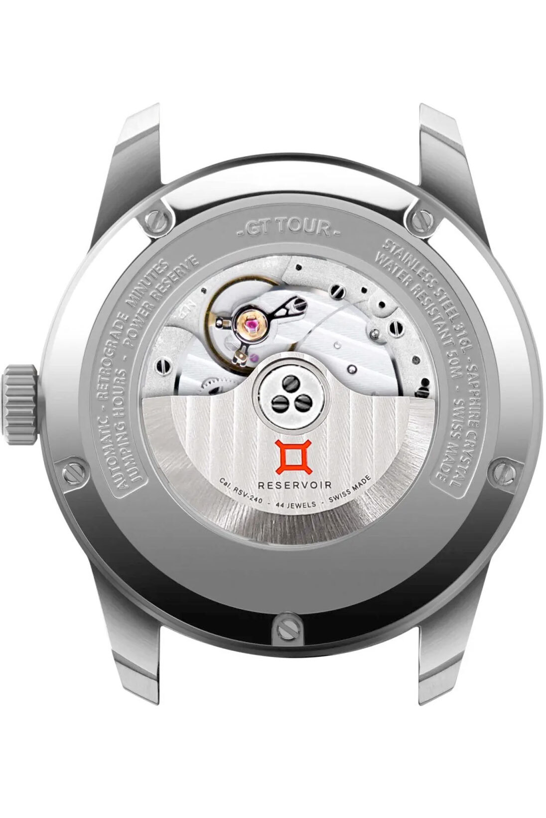 Powered by the new caliber RSV-240, a proprietary patented three-complication module coupled to a manufacture movement (LJP-G100 base), combining retrograde minute, jumping hour and a 56-Hour power reserve.