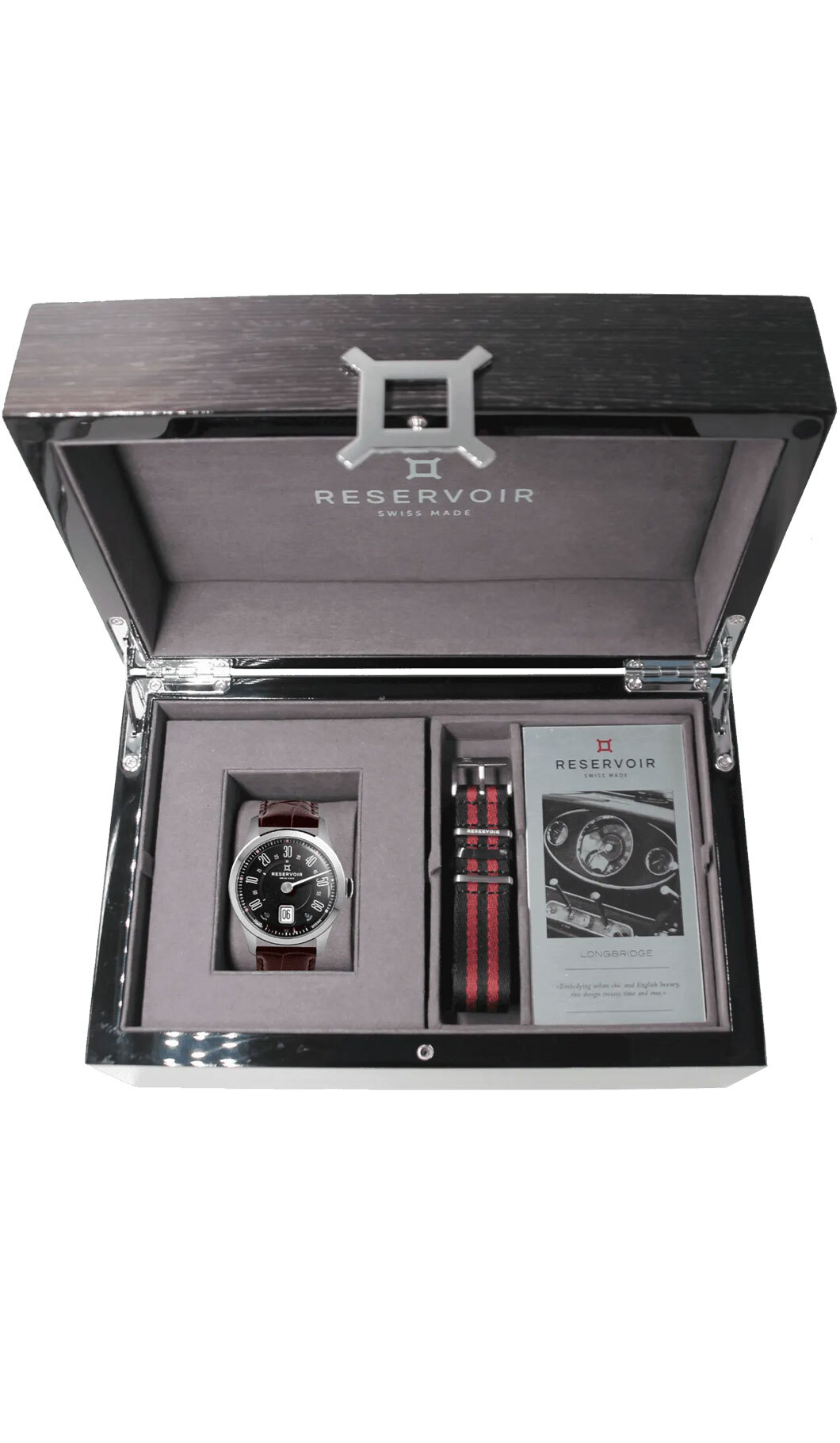 Delivered in a prestigious wooden box with an additional NATO strap.