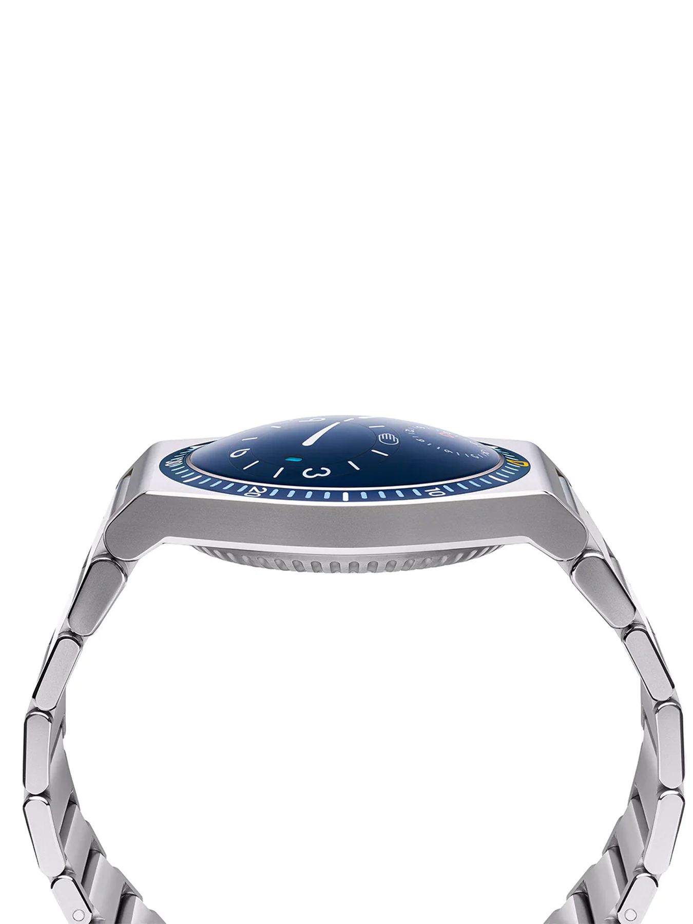 - This timepiece features a 41mm titanium case paired with a high quality titanium bracelet. It showcases a distinctive blue dial and is powered by a precise automatic winding movement. The watch is designed with a water resistance of up to 50m.