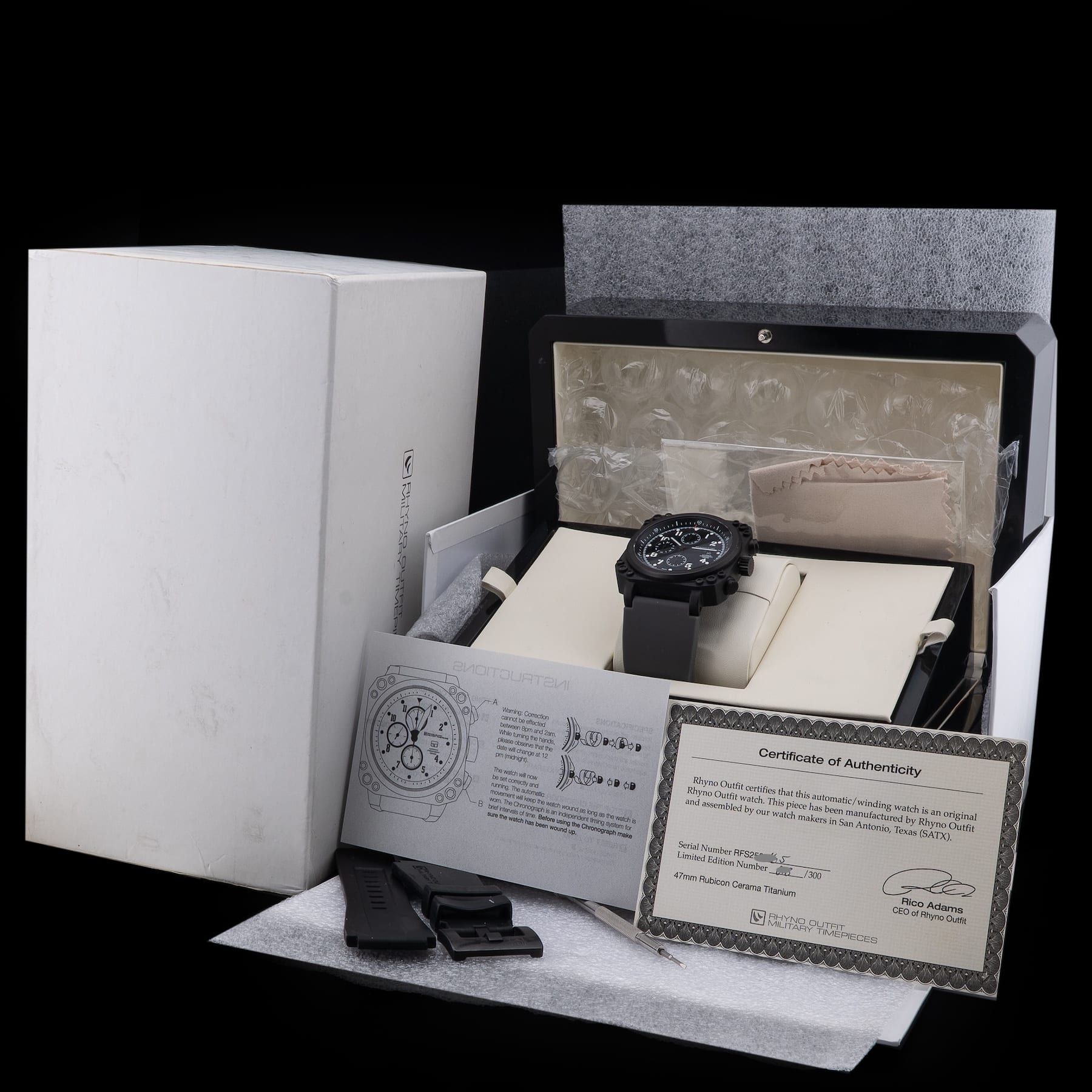 This Rhyno Outfit RF5250 Limited Edition is in GREAT condition, it has box and papers. This watch has been fully authenticated and certified by Exquisite Timepieces.Please note, the photos shown are of the actual watch you will receive.