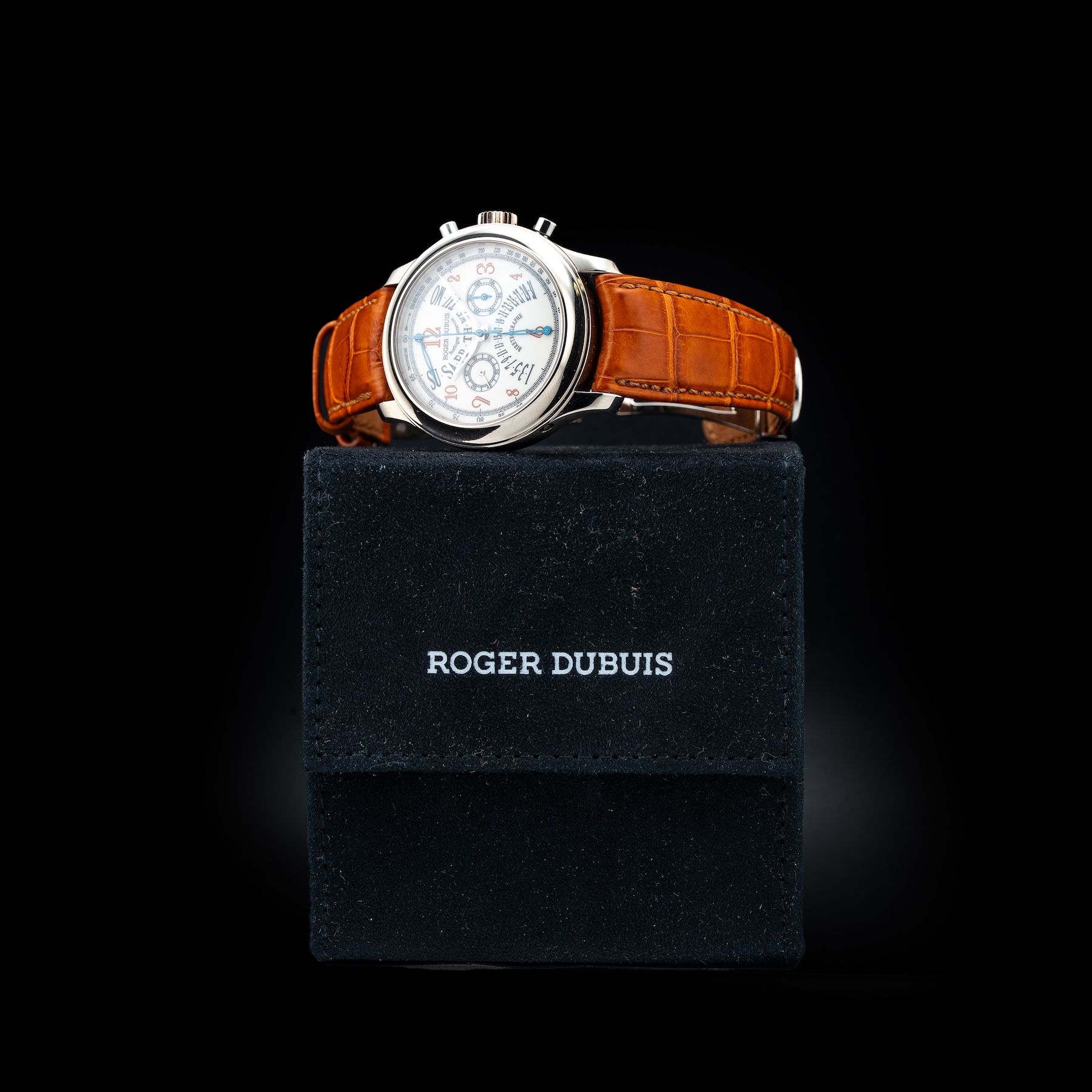 This Roger Dubuis H40 5630 0/5.6 Hommage Bi-Retrograde Date Chronograph is in GREAT condition, no box or papers. This watch has been fully authenticated and certified by Exquisite Timepieces. Please note, the photos shown are of the actual watch you will receive.