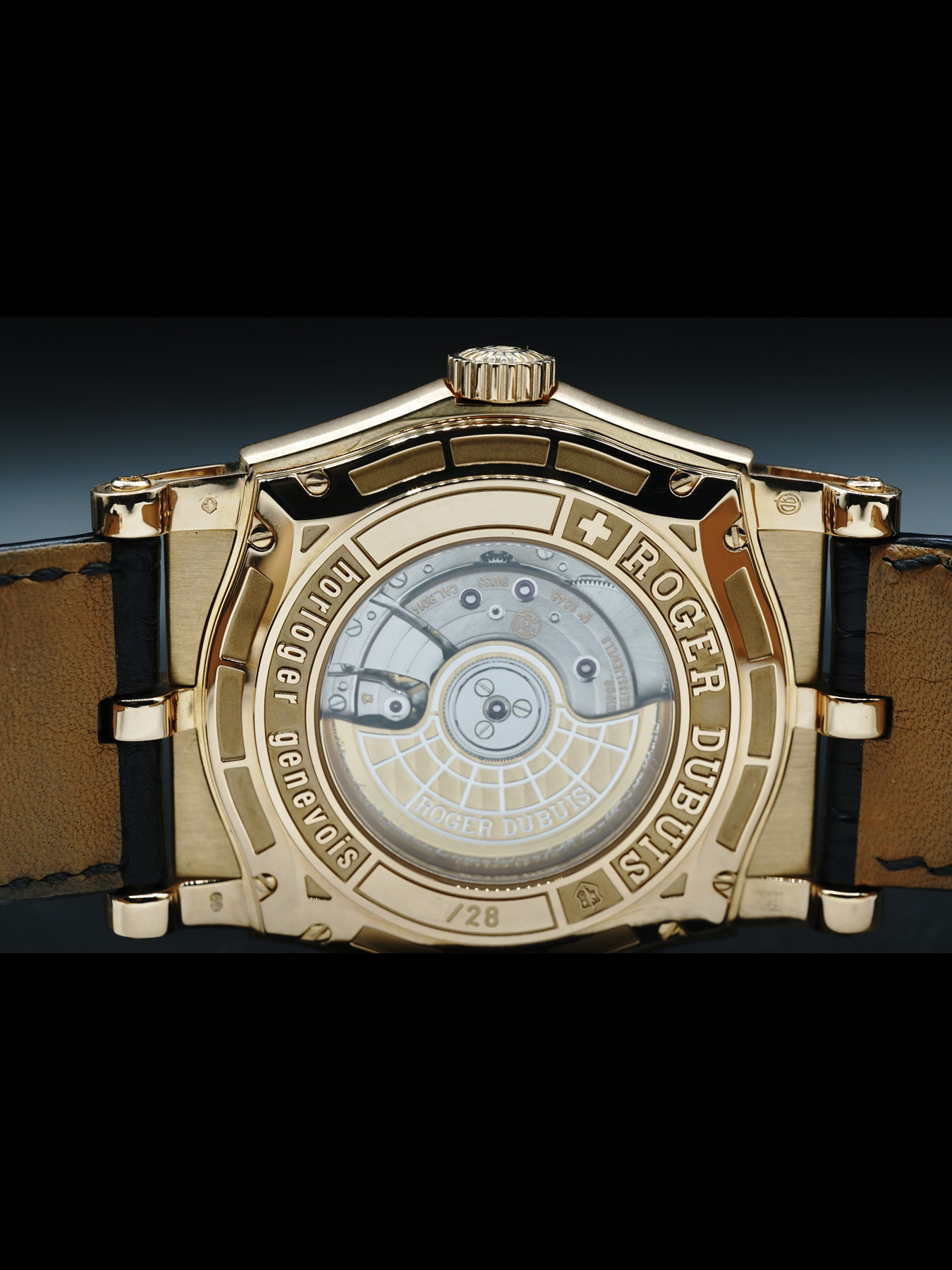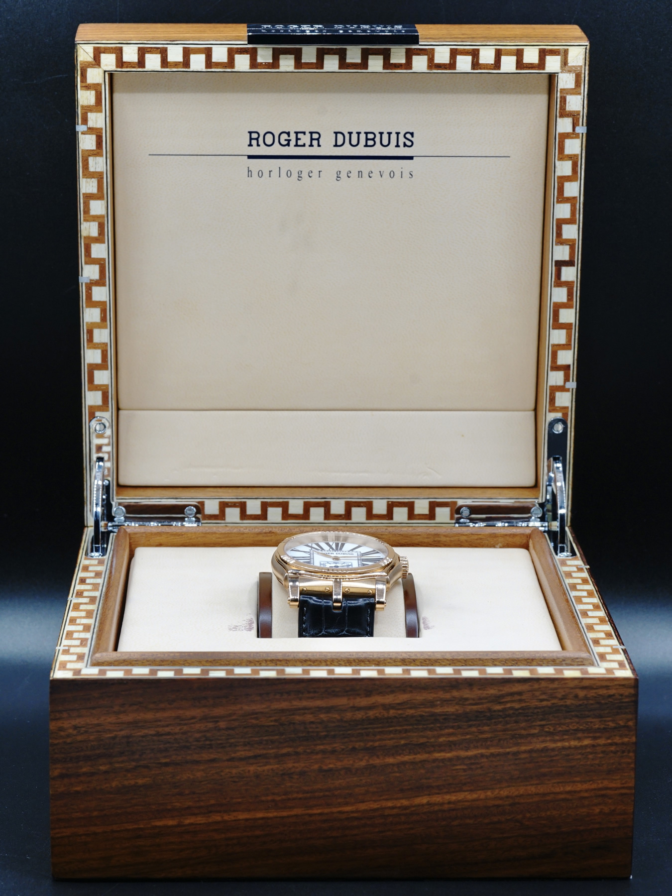 Powered by Roger Dubuis Calibre RD14 for a power reserve of approximately 48 hours. Water resistance up to 30 meters.