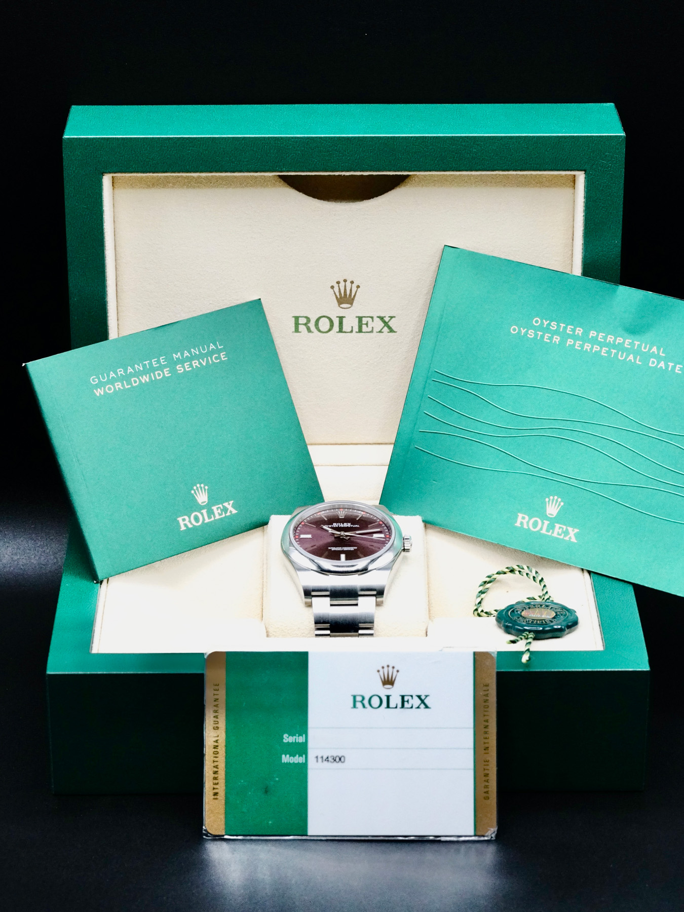 This Rolex 114300 Oyster Perpetual is in GREAT condition. This watch includes its Original Box, Warranty Card Dated 2017 and Instructions. This Rolex watch has been fully authenticated and certified by a 3rd party organization. You’ll receive the certificate of authenticity with your purchase.