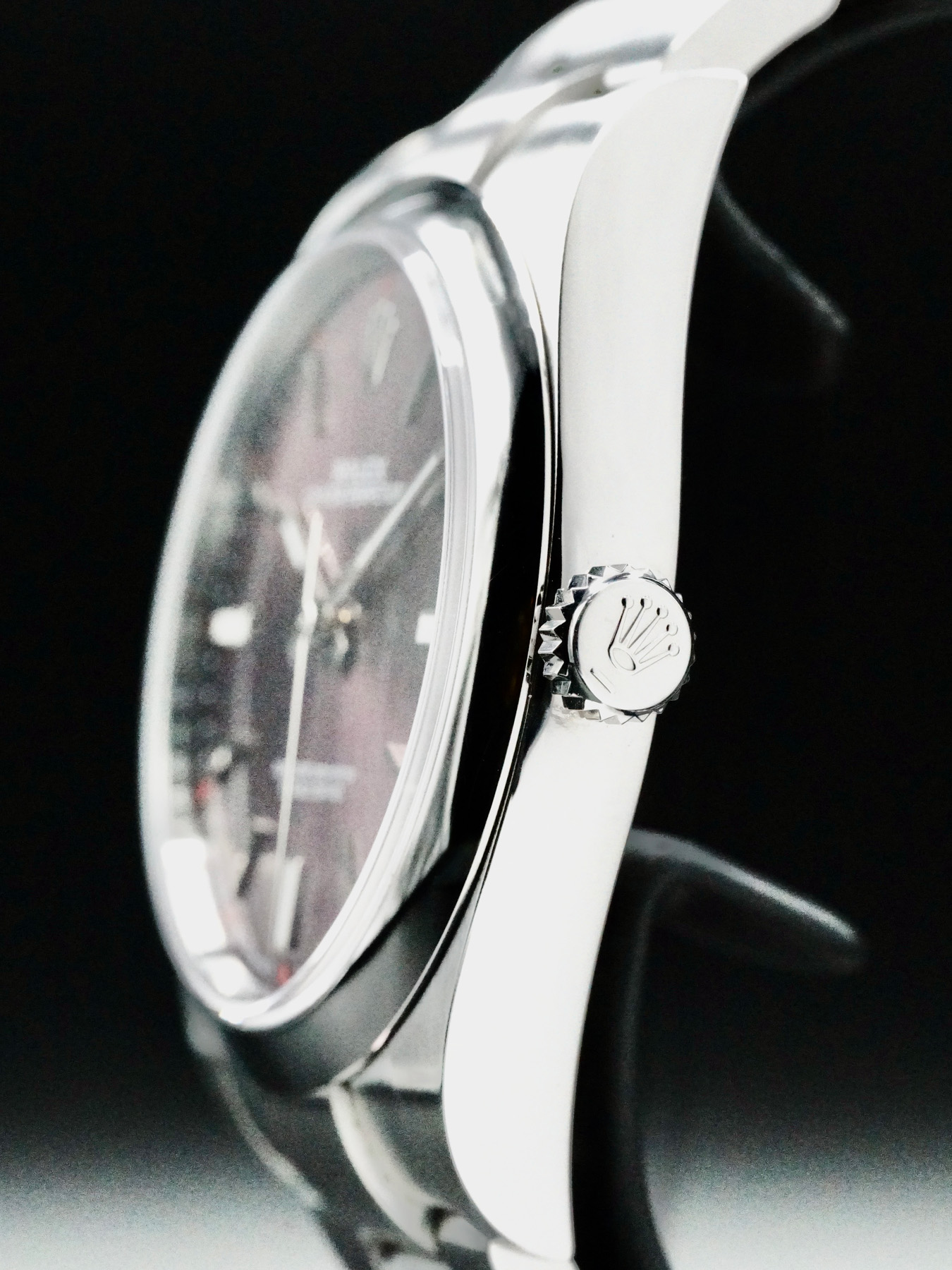 This watch features a 39 mm stainless steel case and bracelet. This watch also sports a purple dial. Powered by a mechanical automatic movement. Water resistance up to 100 meters.