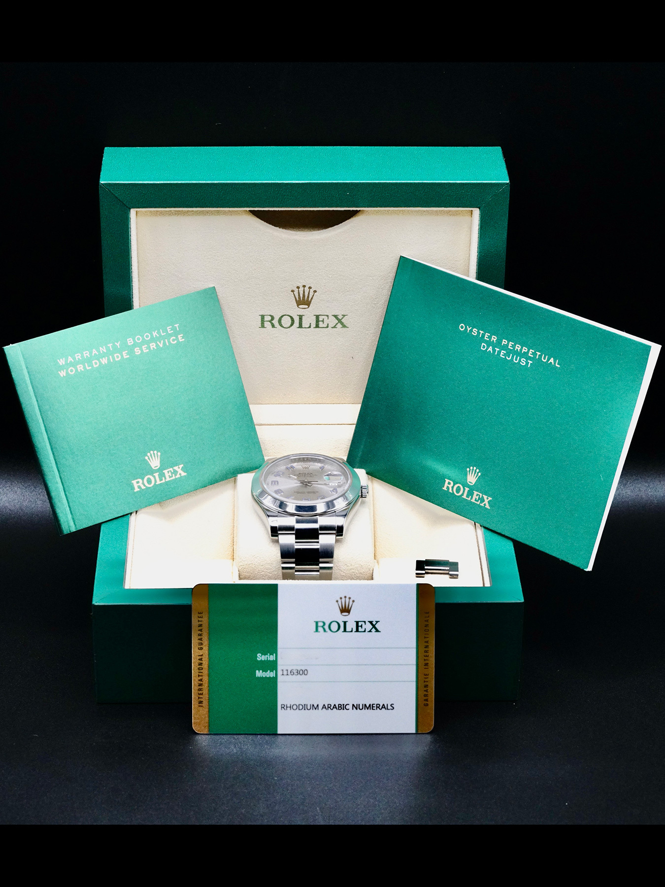 This Rolex 116300 Datejust II is in GREAT condition. This watch includes box, papers, warranty card dated 2017, extra bracelet link. This Rolex watch has been fully authenticated and certified by a 3rd party organization. You’ll receive the certificate of authenticity with your purchase.