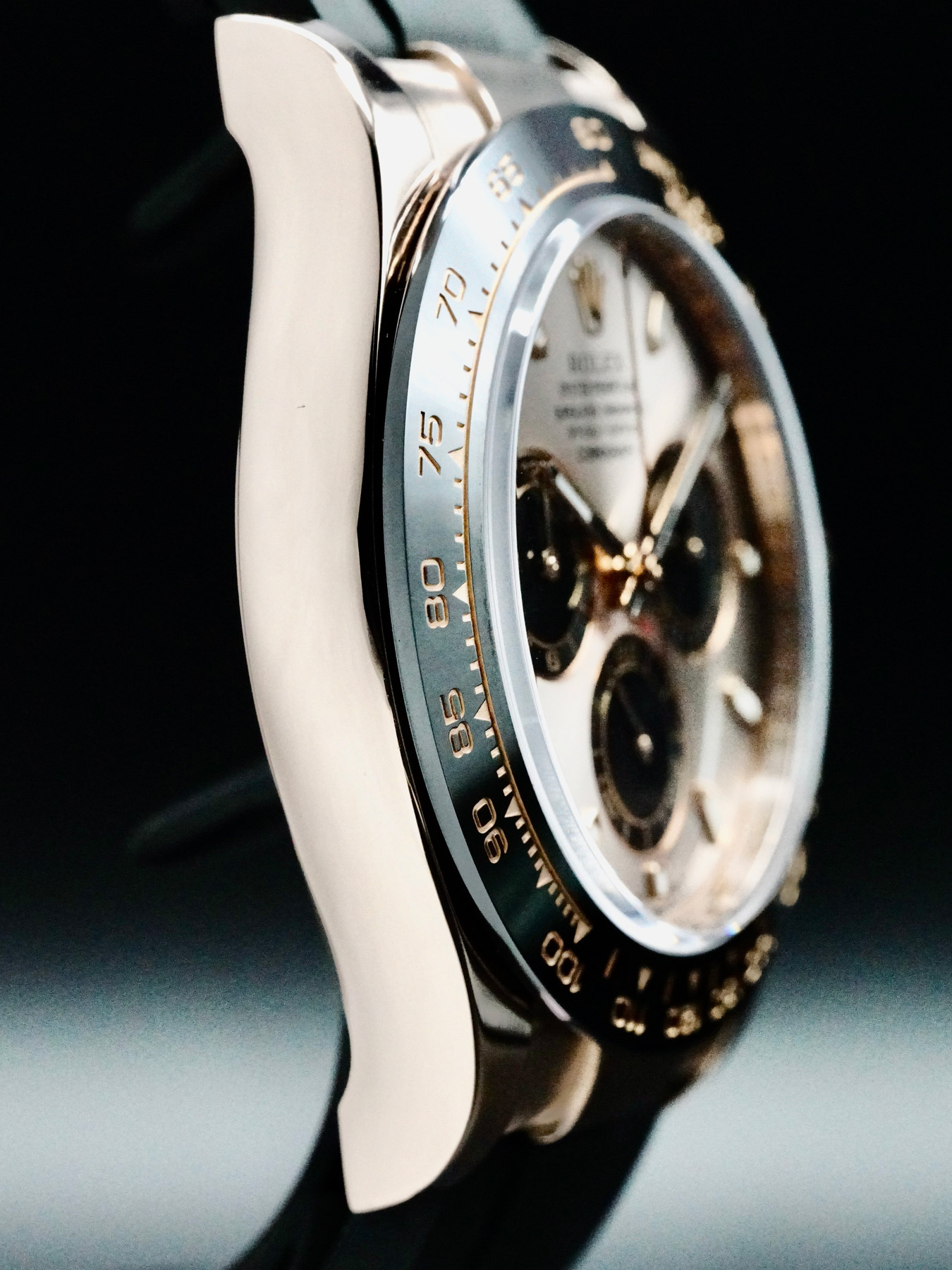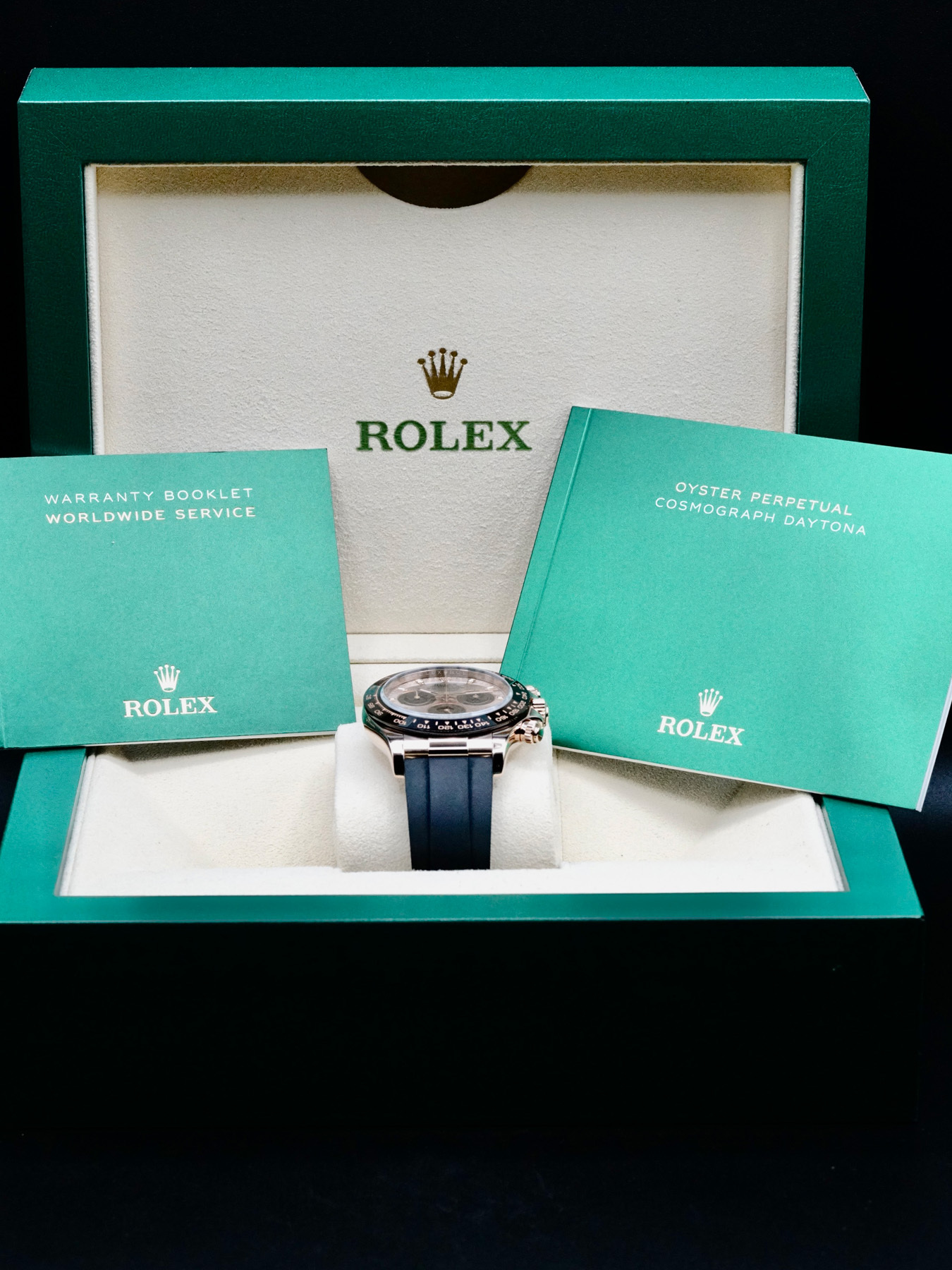 This Rolex Daytona Chronograph 116515LN is in EXCELLENT condition. This watch includes its original box and instruction manual. No warranty card. This watch has been fully authenticated and certified by Exquisite Timepieces.