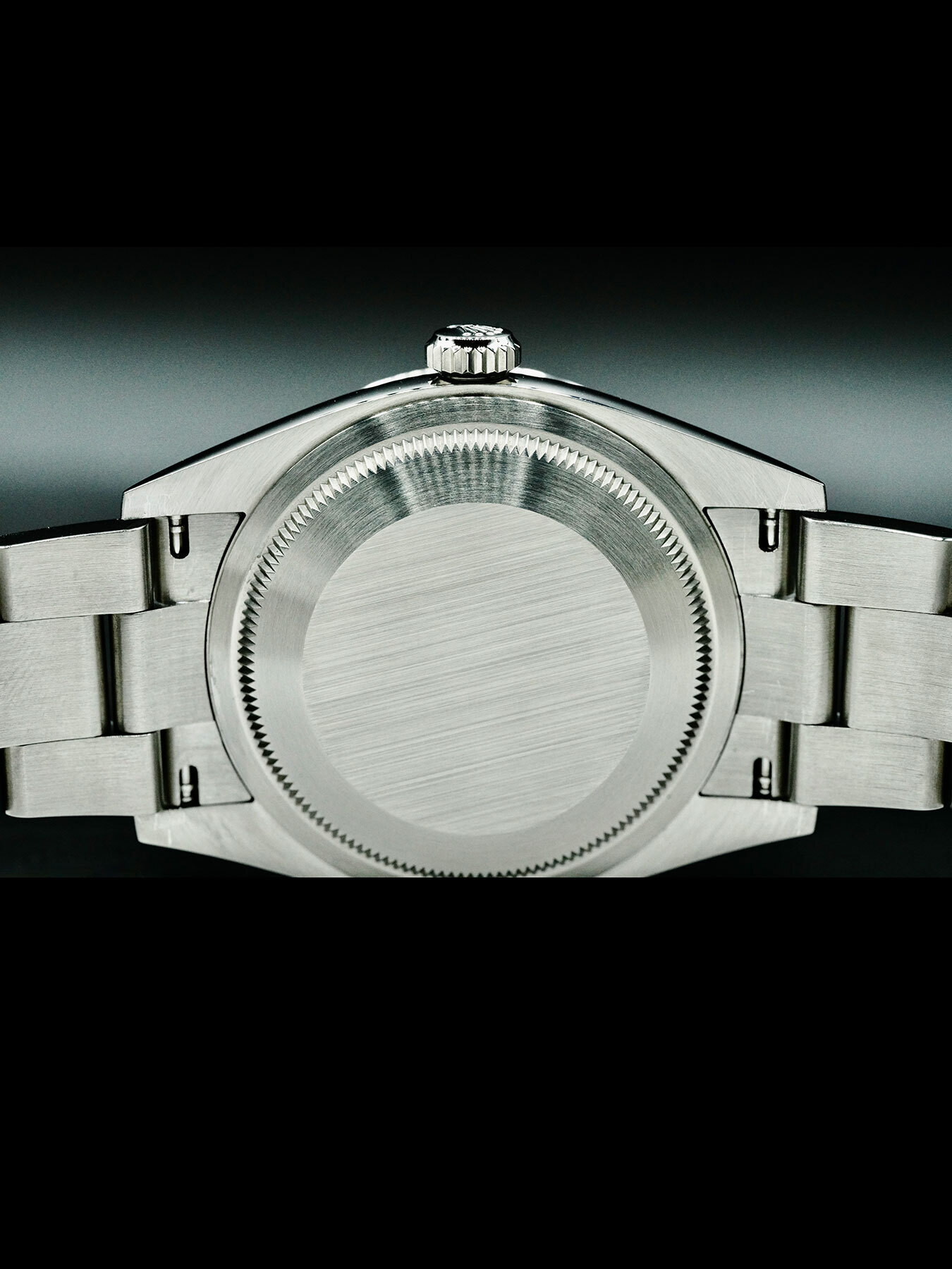 Powered by Rolex Calibre 3230 for a power reserve of approximately 70 hours. Water resistance up to 100 meters.