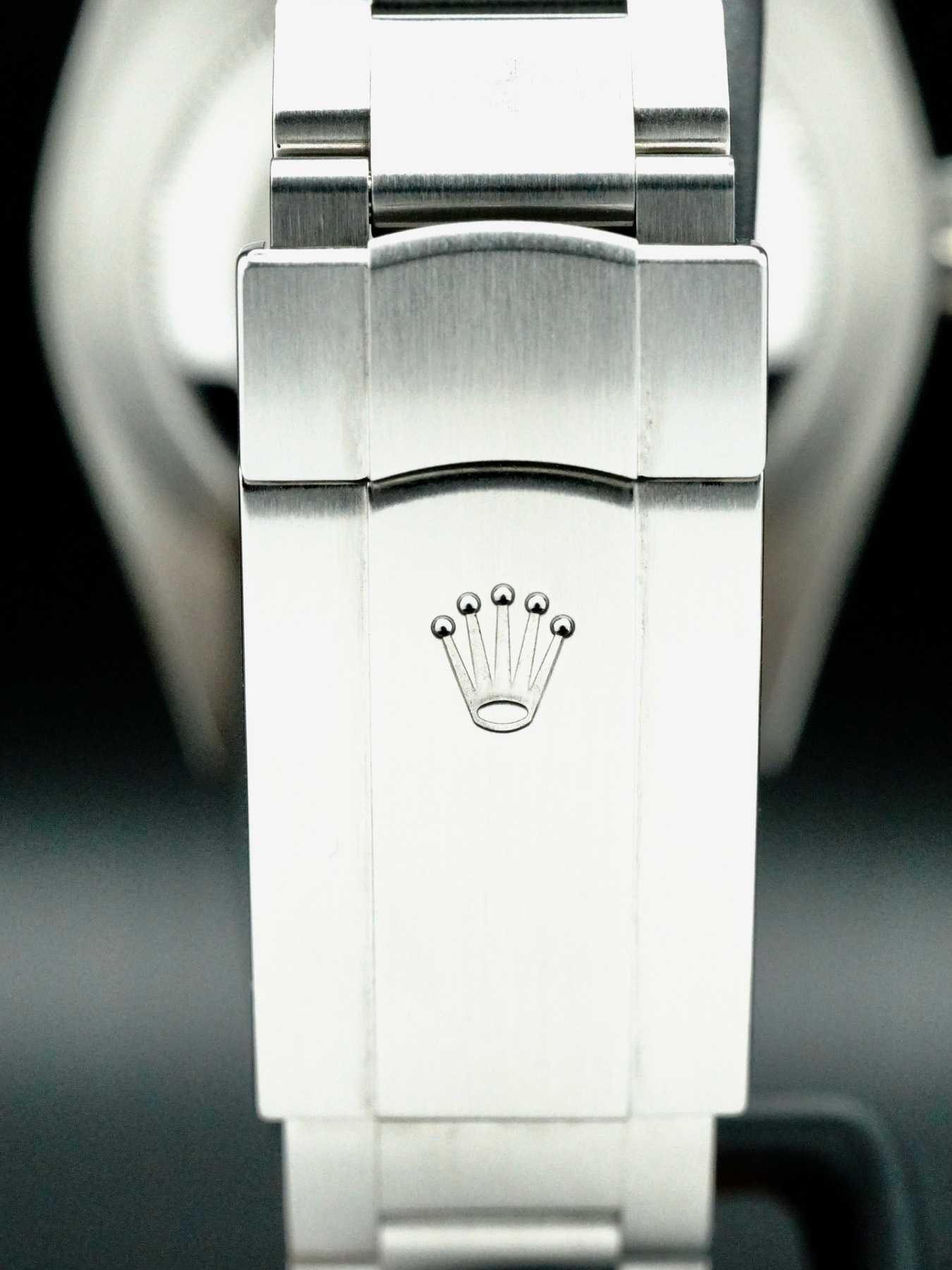 Mechanical self-winding movement powered by Rolex Calibre 3230 with a power reserve of approximately 70 hours. Water resistance up to 100 meters