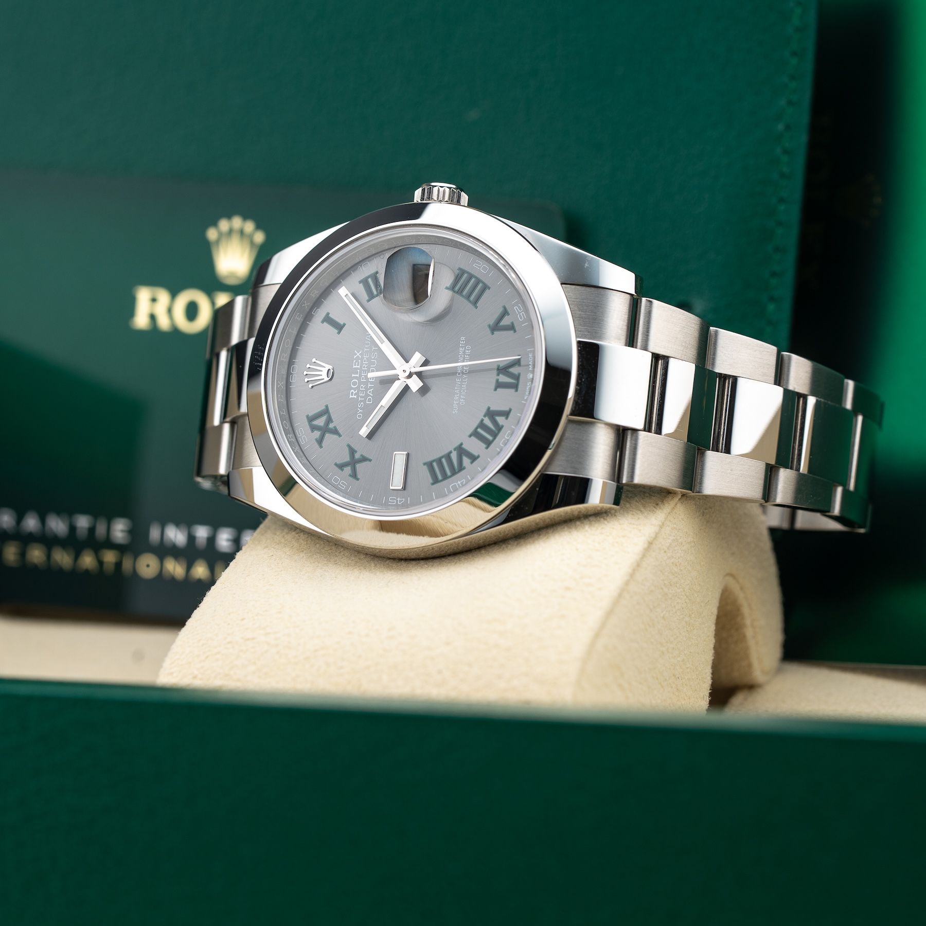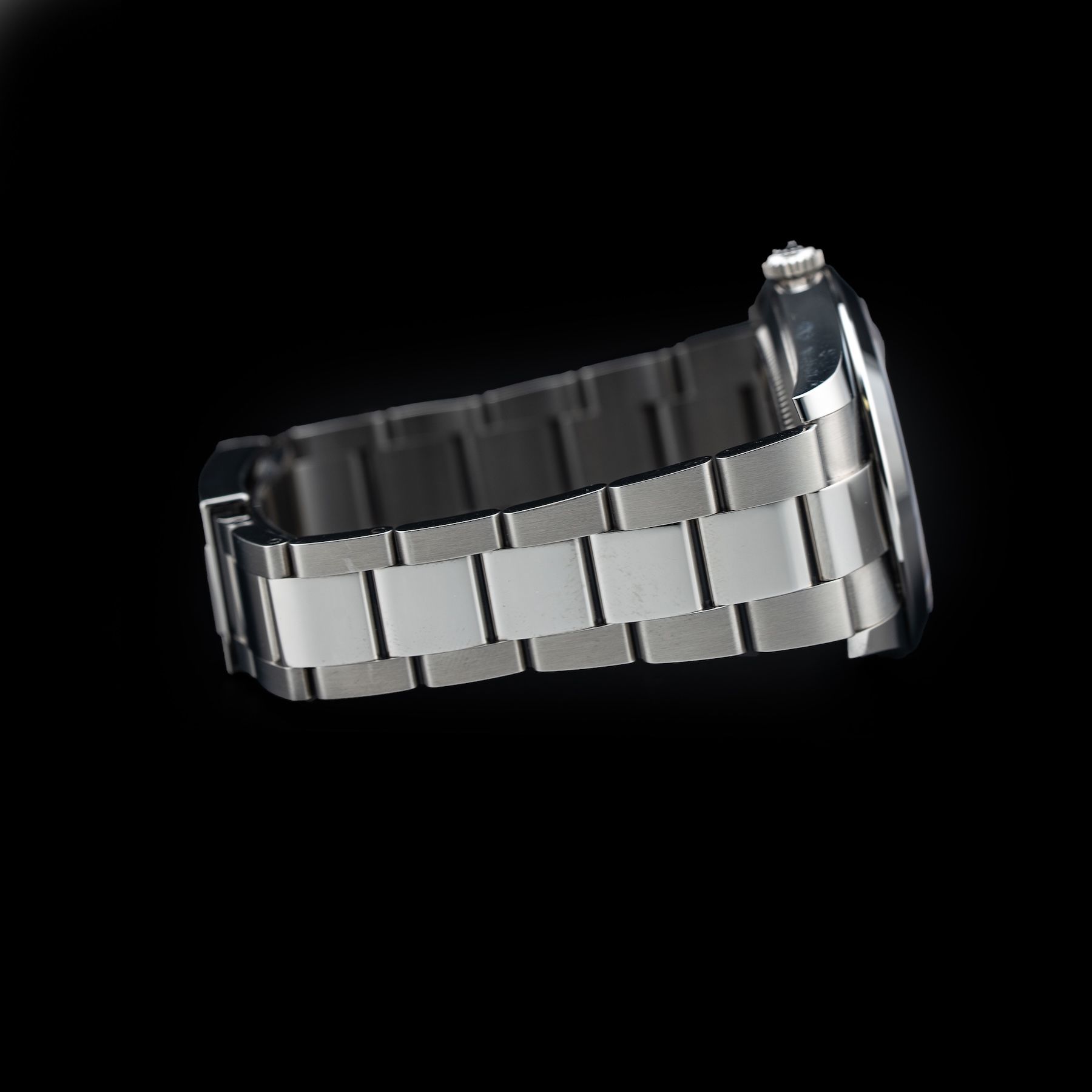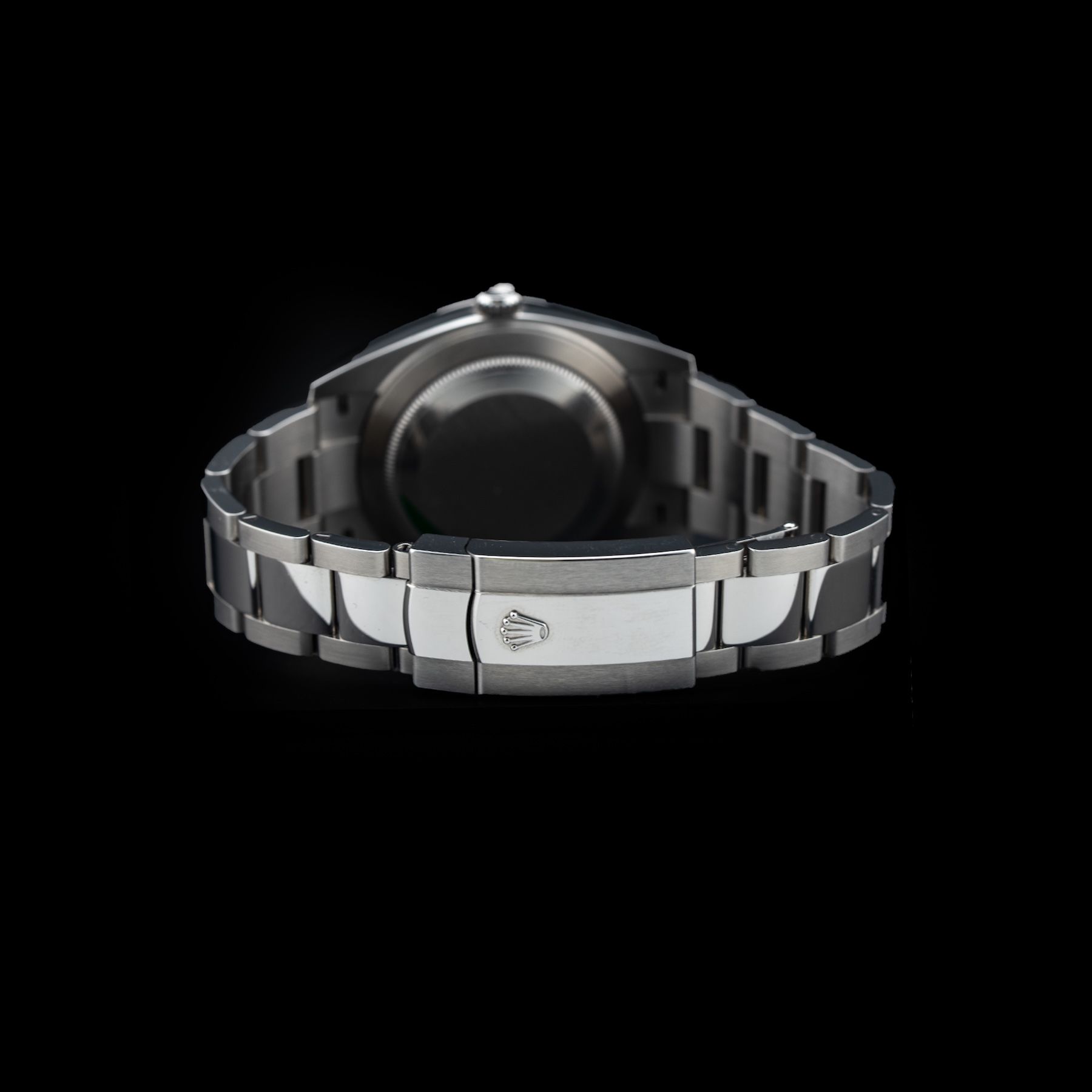 This watch features a 41mm Oystersteel case on Oystersteel bracelet. This watch also sports a slate dial. Powered by a perpetual, mechanical, self-winding movement. Water resistance up to 100 meters.