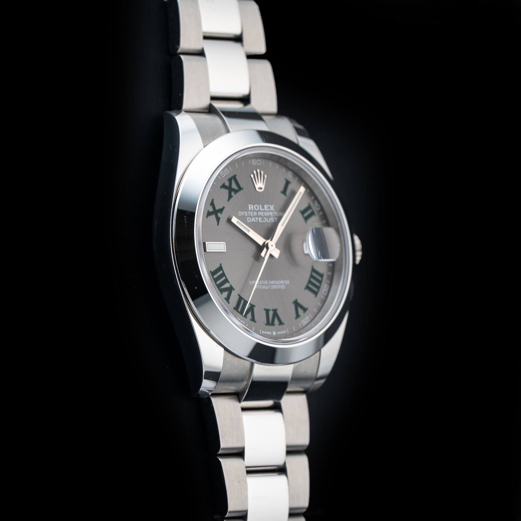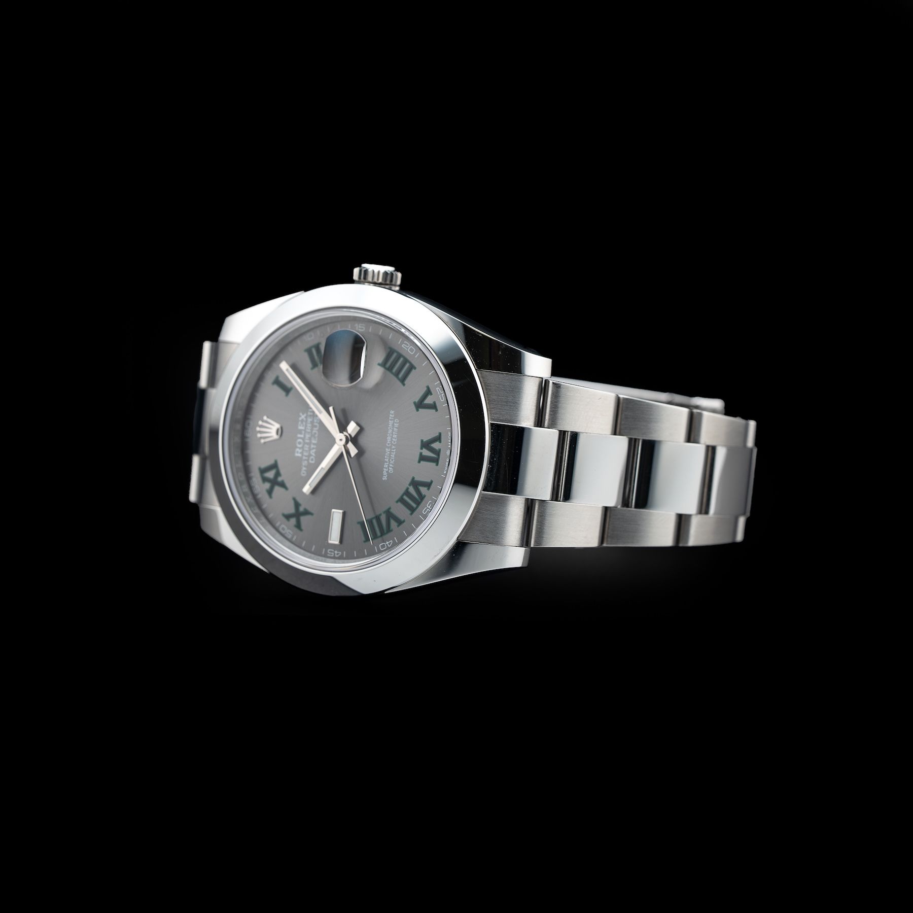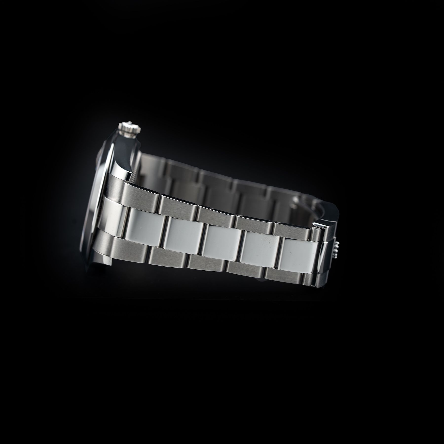 This watch features a 41mm Oystersteel case on Oystersteel bracelet. This watch also sports a slate dial. Powered by a perpetual, mechanical, self-winding movement. Water resistance up to 100 meters.