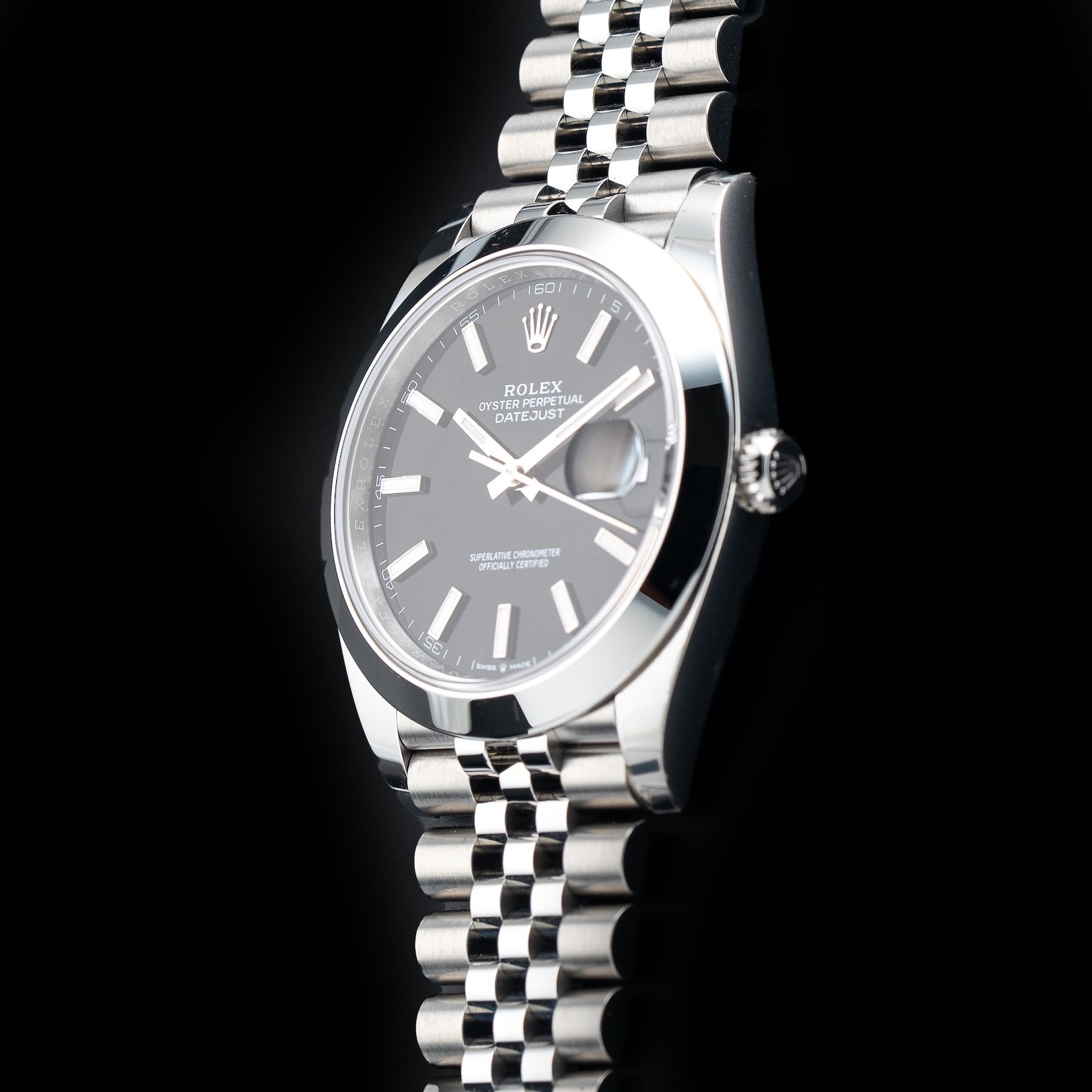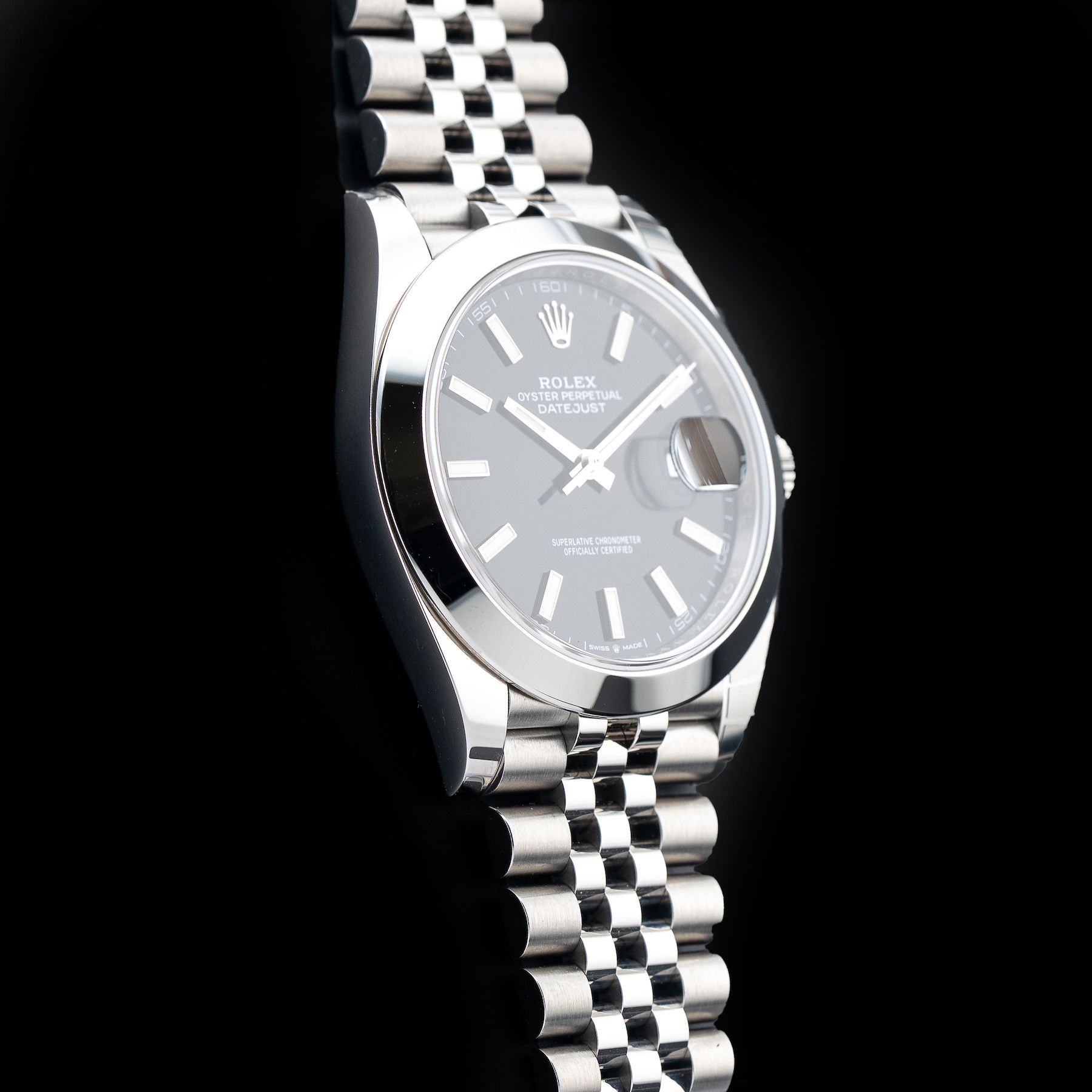 This Rolex 126300-0012 Datejust 41 Black Dial on Jubilee Bracelet is in GREAT condition, it has boxes, papers and warranty card dated 2023.