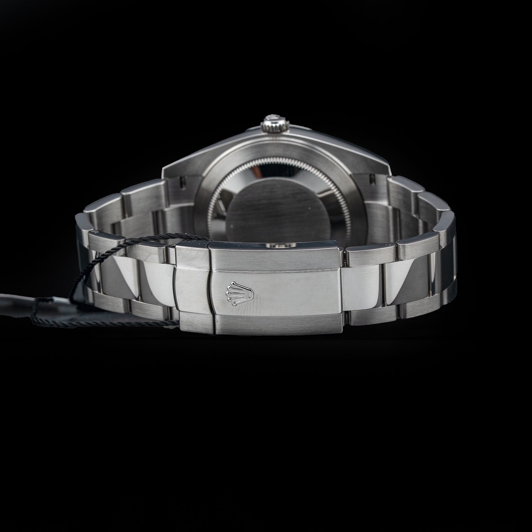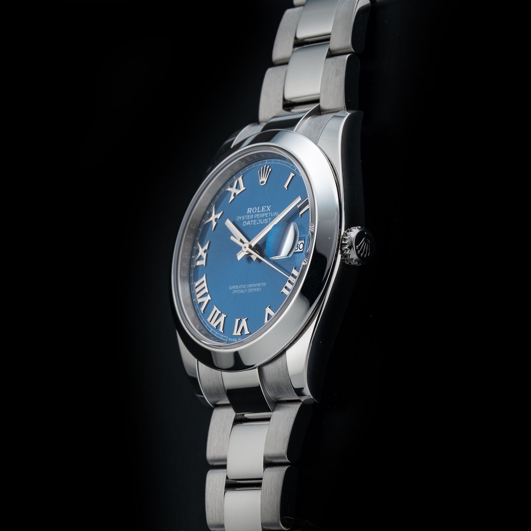 This watch features a 41mm Oystersteel case on steel bracelet. This watch also sports a blue dial. Powered by a self-winding movement. Water resistance up to 100 meters.
