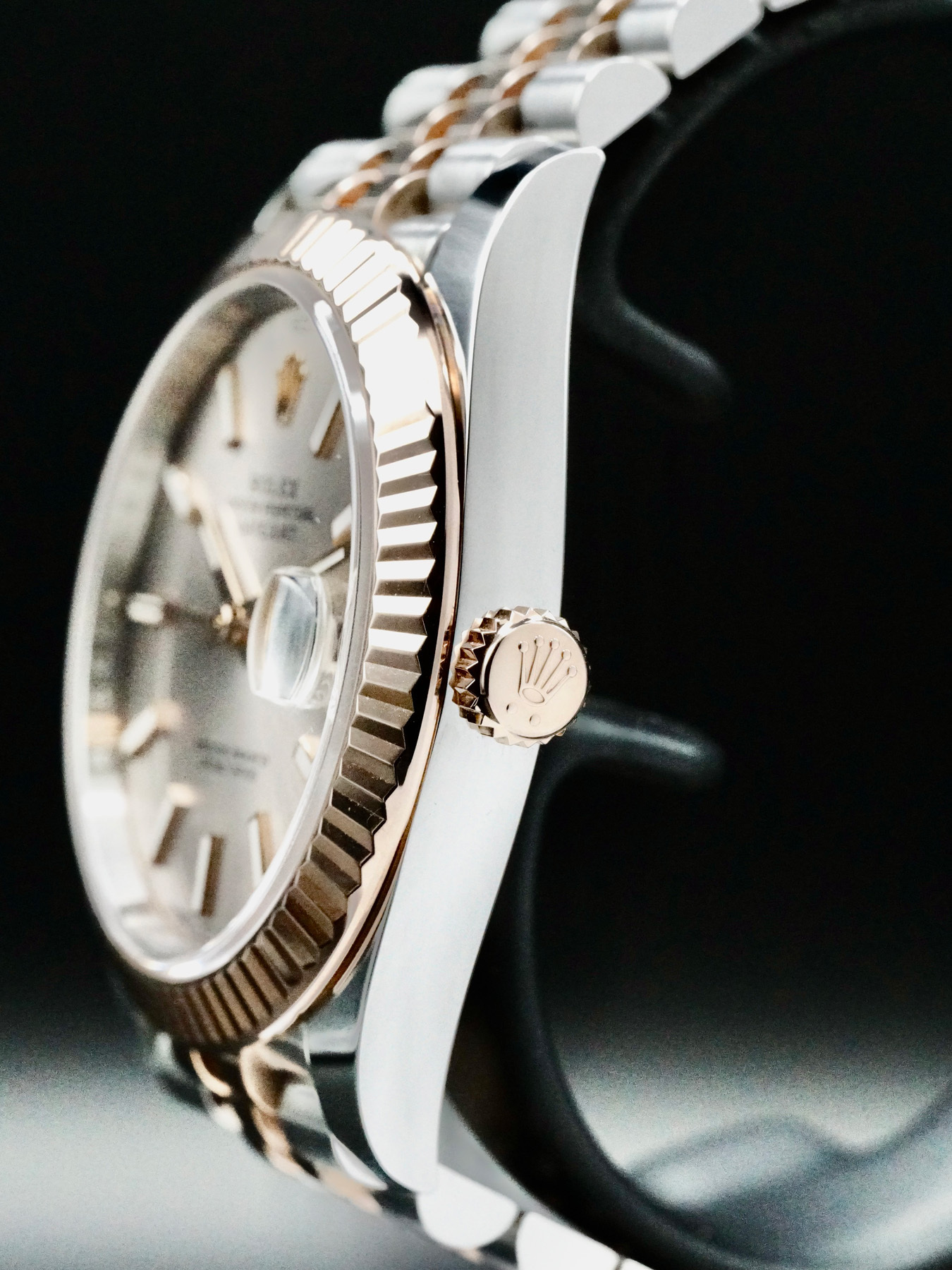This watch features a 41mm steel and gold case with silver dial. Powered by a Mechanical Automatic Movement. Water resistance up to 100 meters.