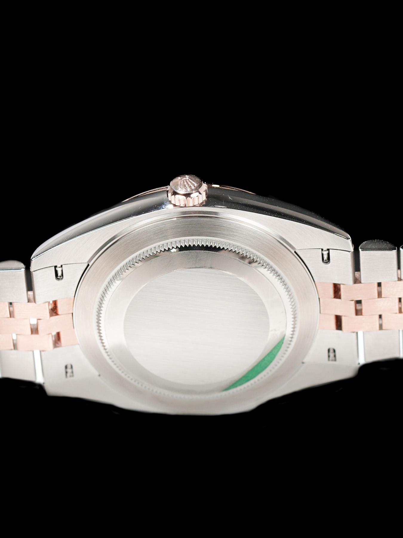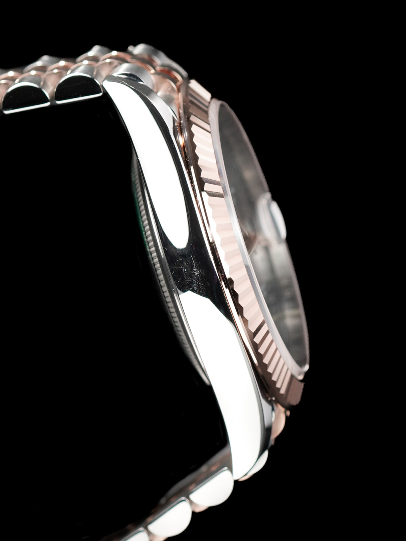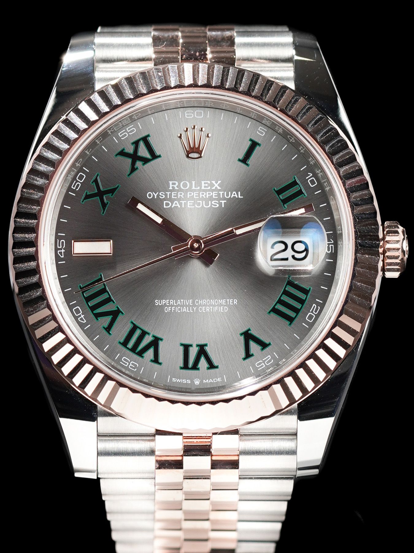 This watch features a 41mm stainless steel & rose gold case on stainless steel & rose gold bracelet. This watch also sports a grey dial. Powered by a self-winding chronometer movement. Water resistance up to 100 meters.