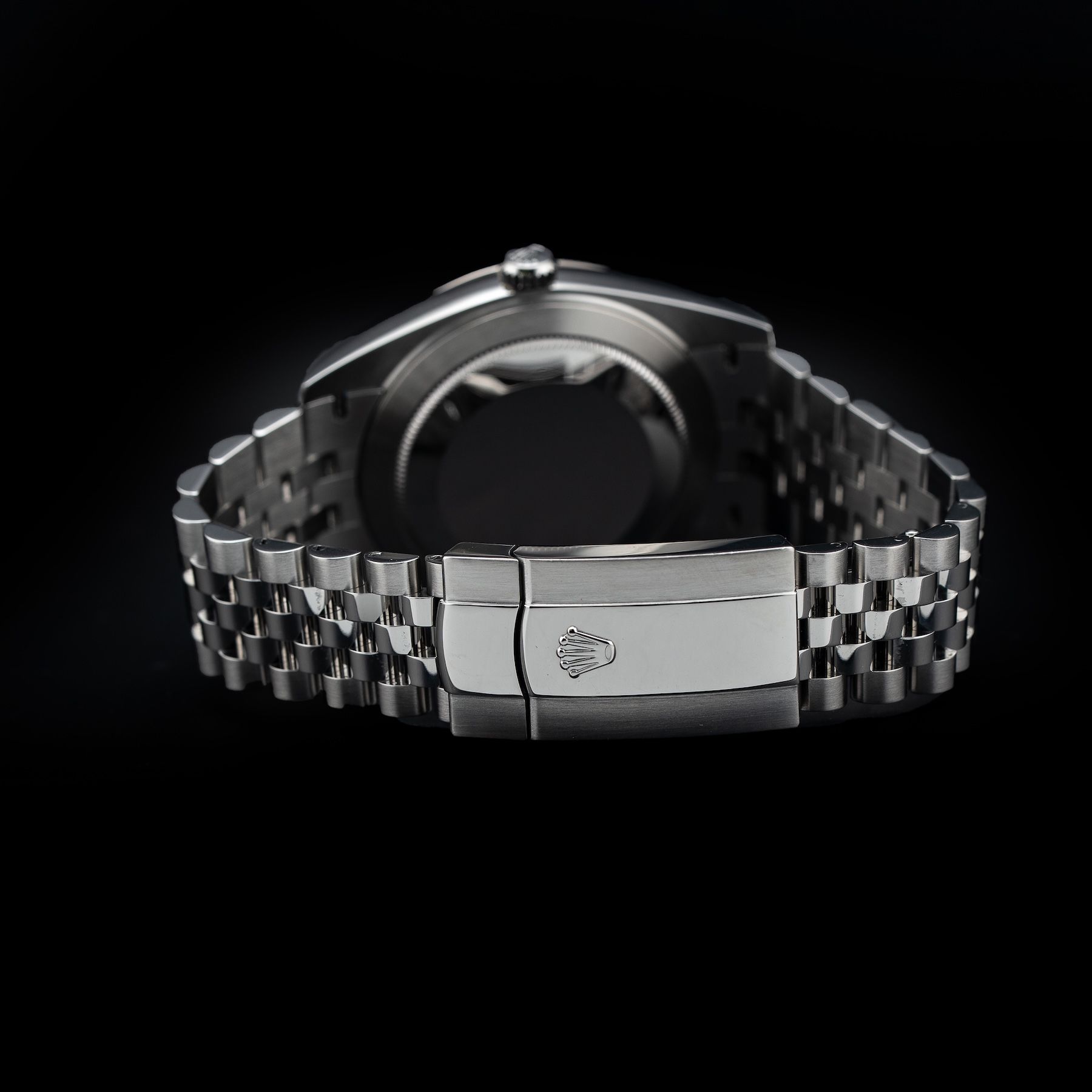 This watch features a 41mm Oystersteel case on Oystersteel bracelet. This watch also sports a green dial. Powered by a Perpetual, mechanical, self-winding movement. Water resistance up to 100 meters.