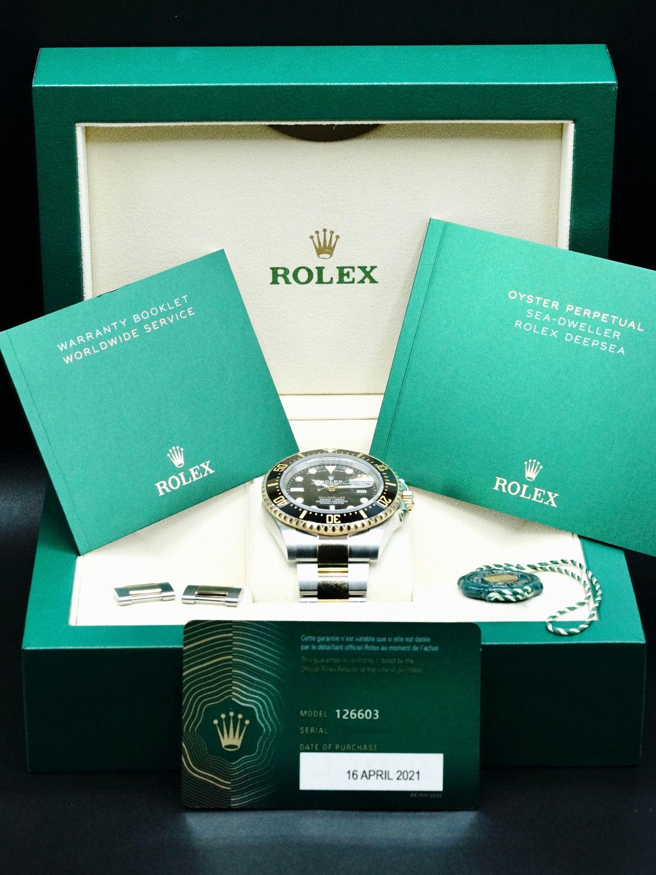 This Rolex 126603 Red Sea-Dweller is in EXCELLENT condition. This watch includes its Original Box, Original Papers and Warranty Card Dated 2021. Extra bracelet links. This Rolex watch has been fully authenticated and certified by a 3rd party organization. You’ll receive the certificate of authenticity with your purchase.