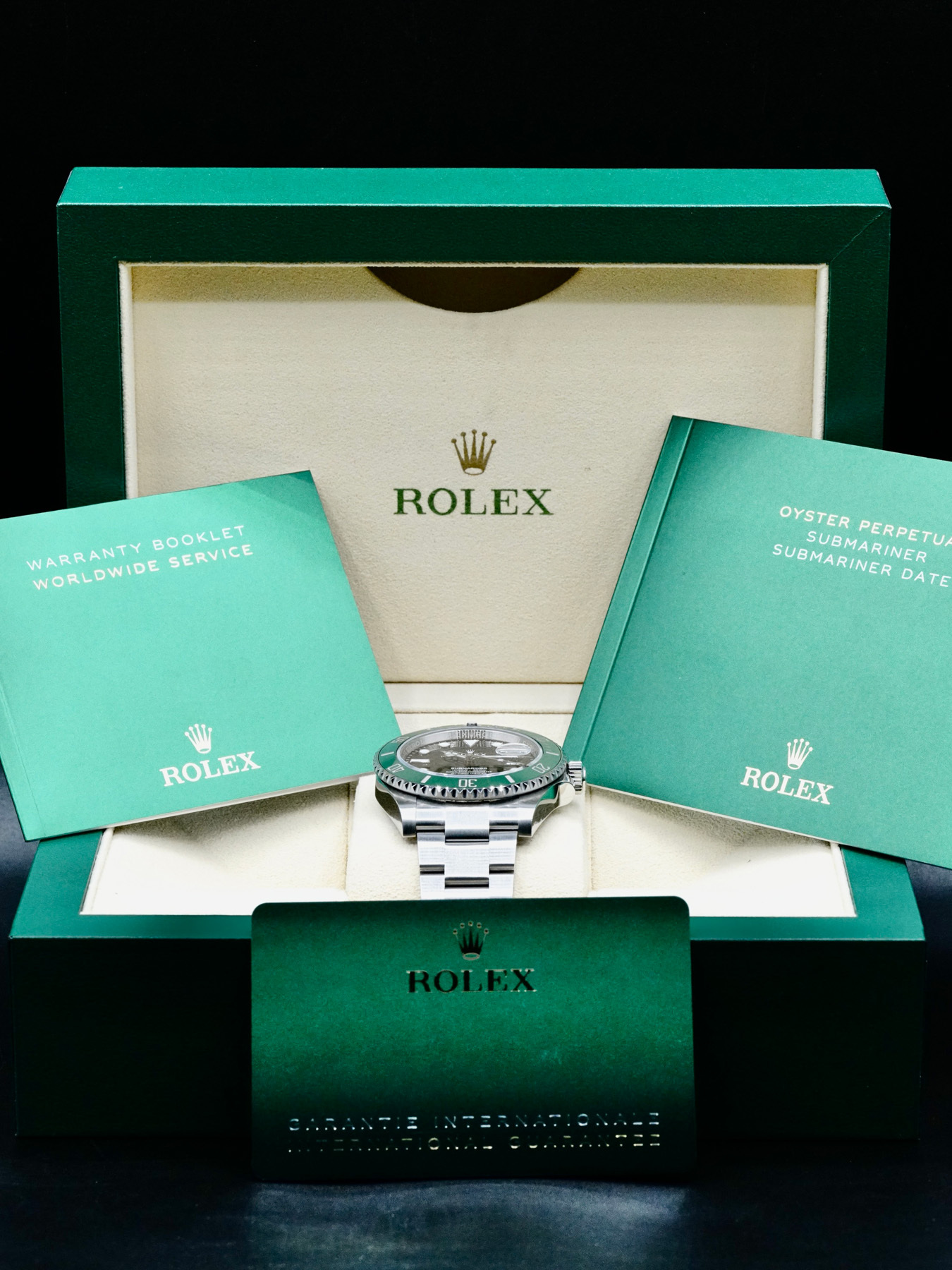 This Rolex Submariner Date "Kermit" 126610LV is in GREAT condition. This watch includes its original box, instruction manual, and international guarantee card dated for September 2020.
