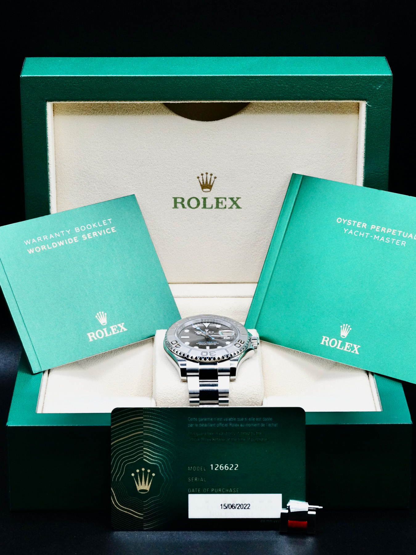 This Rolex 126622 Yacht Master 40 Rhodium Dial is in EXCELLENT condition. This watch includes its original box, instruction booklet, warranty card dated 2022. Extra stainless steel bracelet link. This Rolex watch has been fully authenticated and certified by a 3rd party organization. You’ll receive the certificate of authenticity with your purchase.