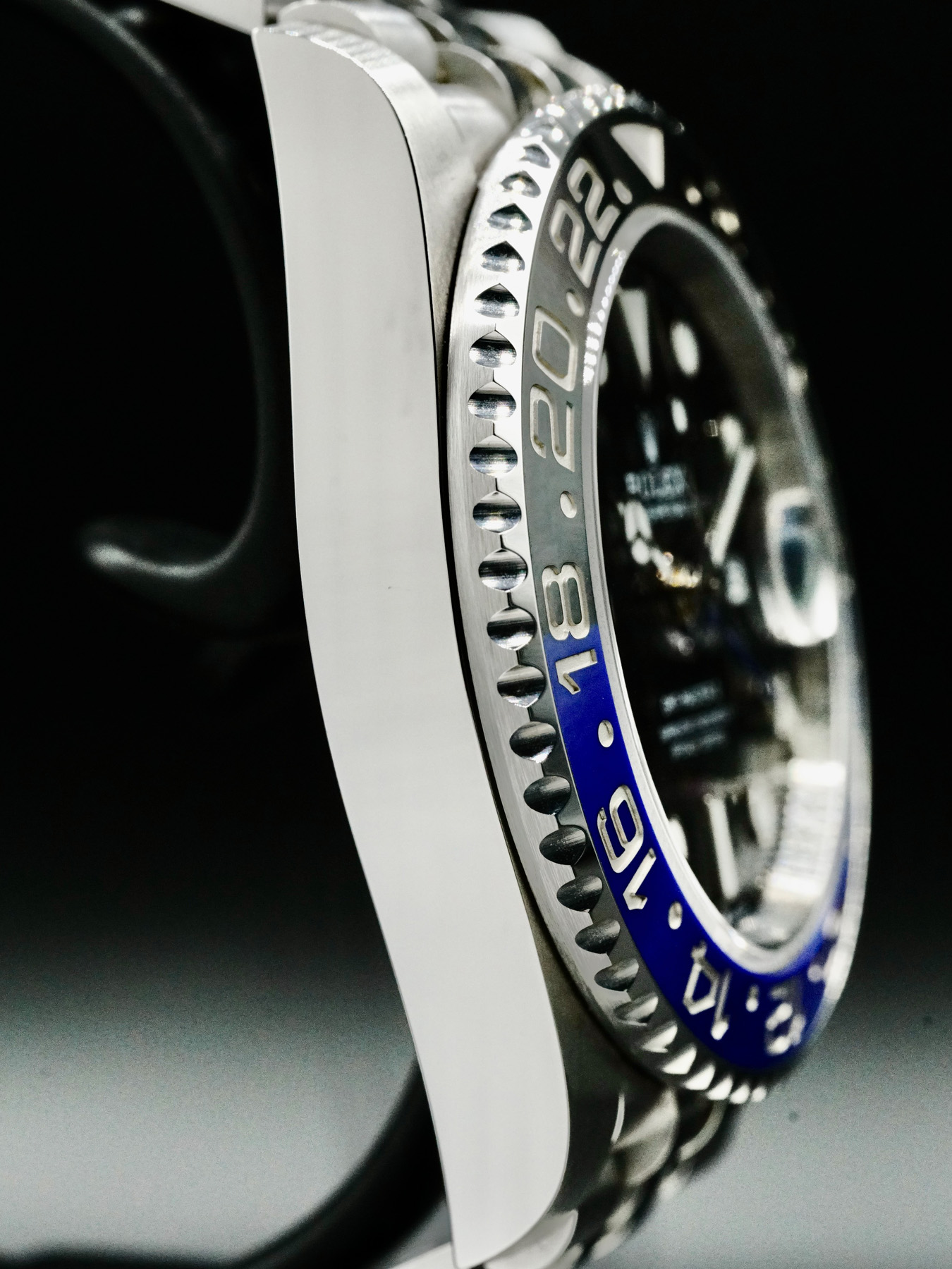 This Rolex GMT-Master II features a 40mm stainless steel case with a solid case back on a stainless steel jubilee bracelet. This watch sports a two-colour blue and black Cerachrom bidirectional bezel insert in ceramic. The dial is black with a highly legible Chromalight display with long-lasting blue luminescence covered by scratch resistant sapphire crystal.