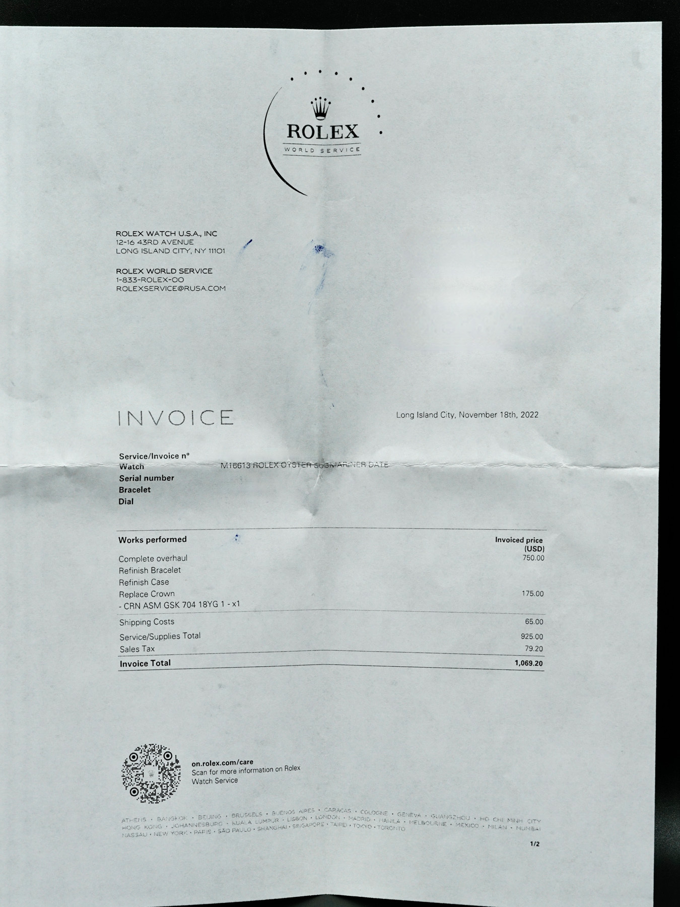 This Rolex 16613 Submariner Date Steel and Yellow Gold Blue is in GREAT condition. It has box, care instruction booklets and warranty dated October 2003. Serviced by Rolex for a complete overhaul on November 18th, 2022.