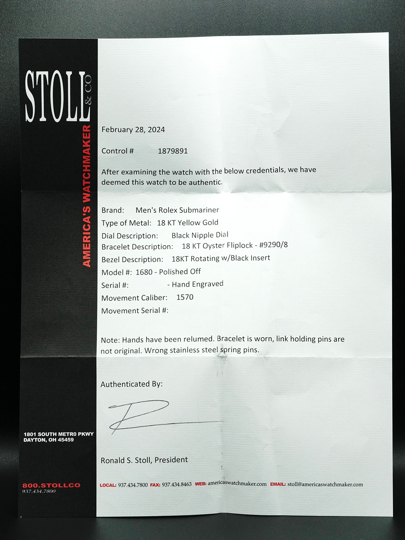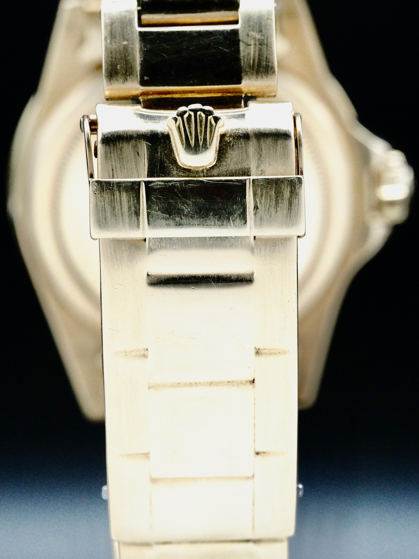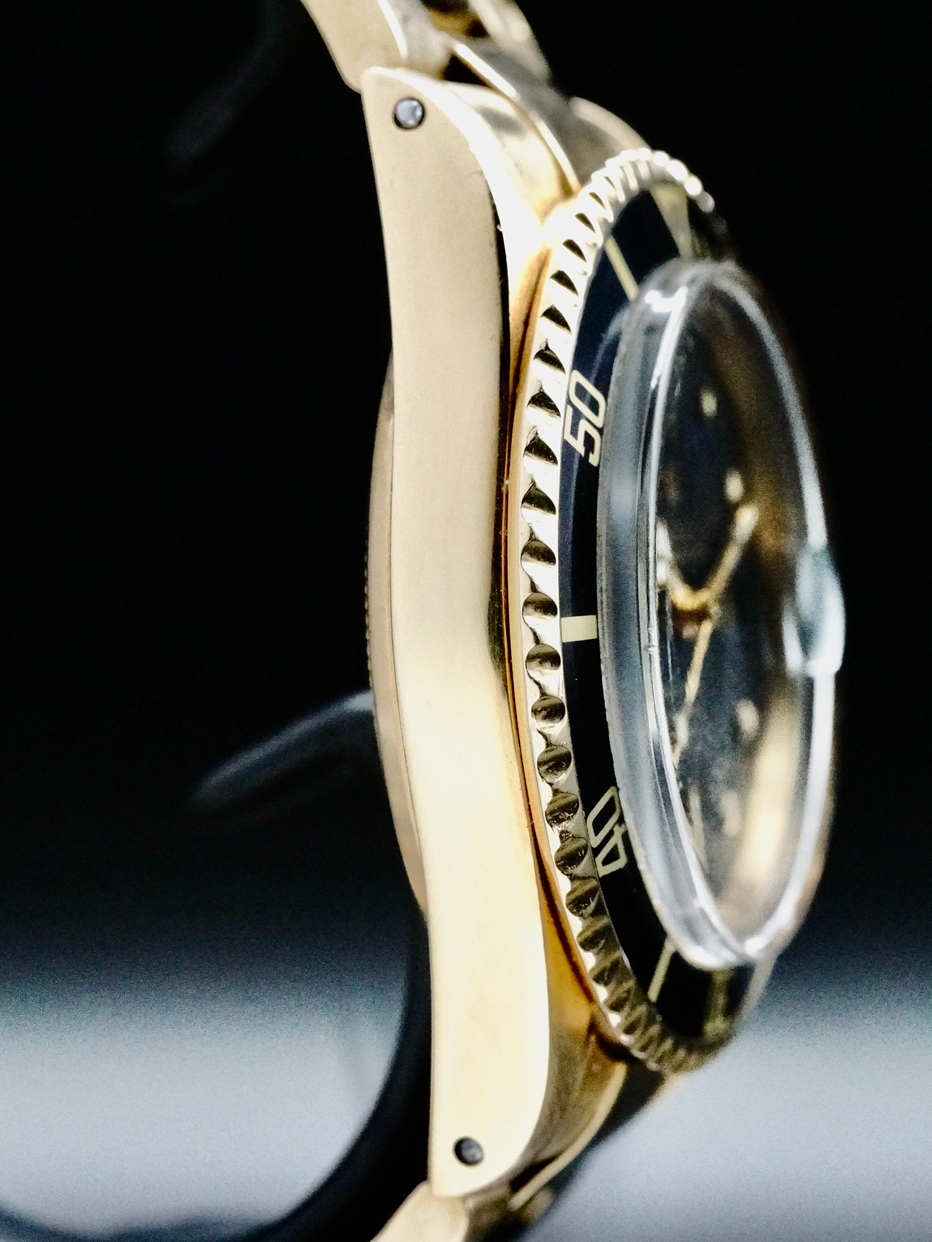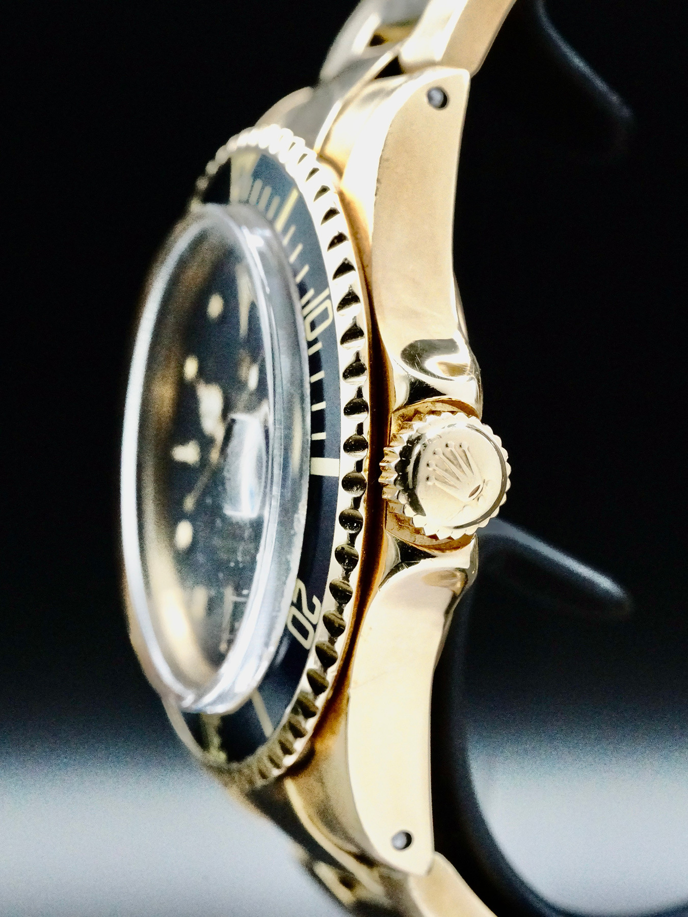 Note: Hands have been relumed. Bracelet is worn, link holding pins are not original. Wrong stainless steel spring pins.