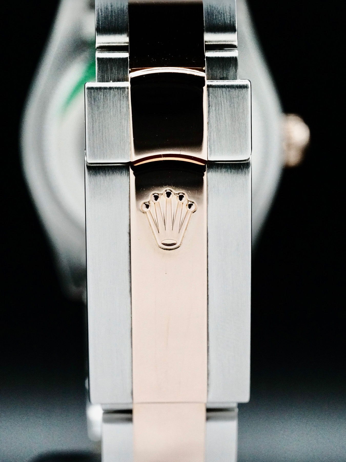 This watch features a 31 mm stainless steel case on gold and stainless steel bracelet. This watch also sports a black dial. Powered by a self-winding automatic movement. Water resistance up to 100 meters.