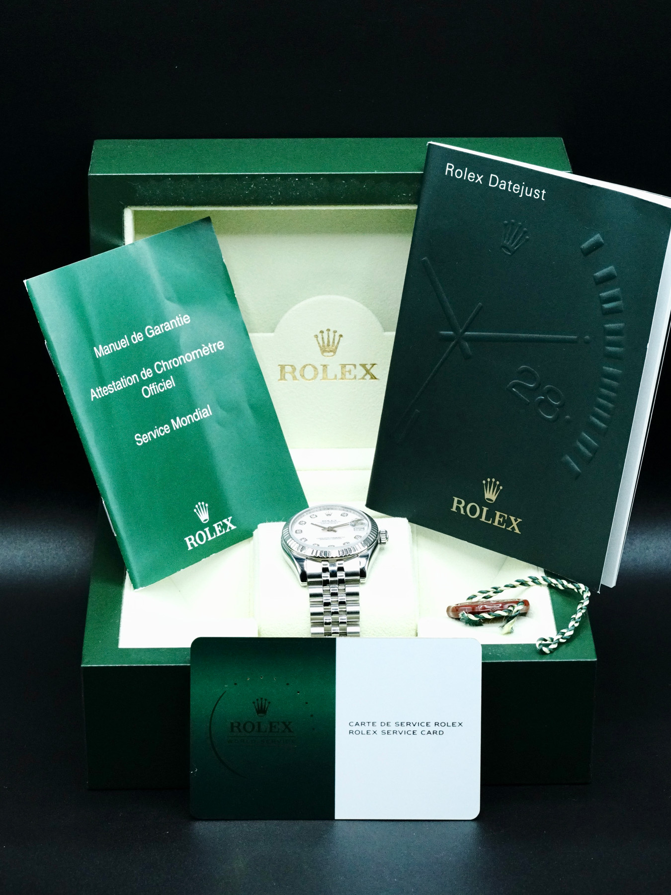 This Rolex Datejust 31 178274 is in EXCELLENT condition. This watch includes its original box, instructions, and Rolex Service Card valid until October 2026. This Rolex watch has been fully authenticated and certified by a 3rd party organization. You’ll receive the certificate of authenticity with your purchase.