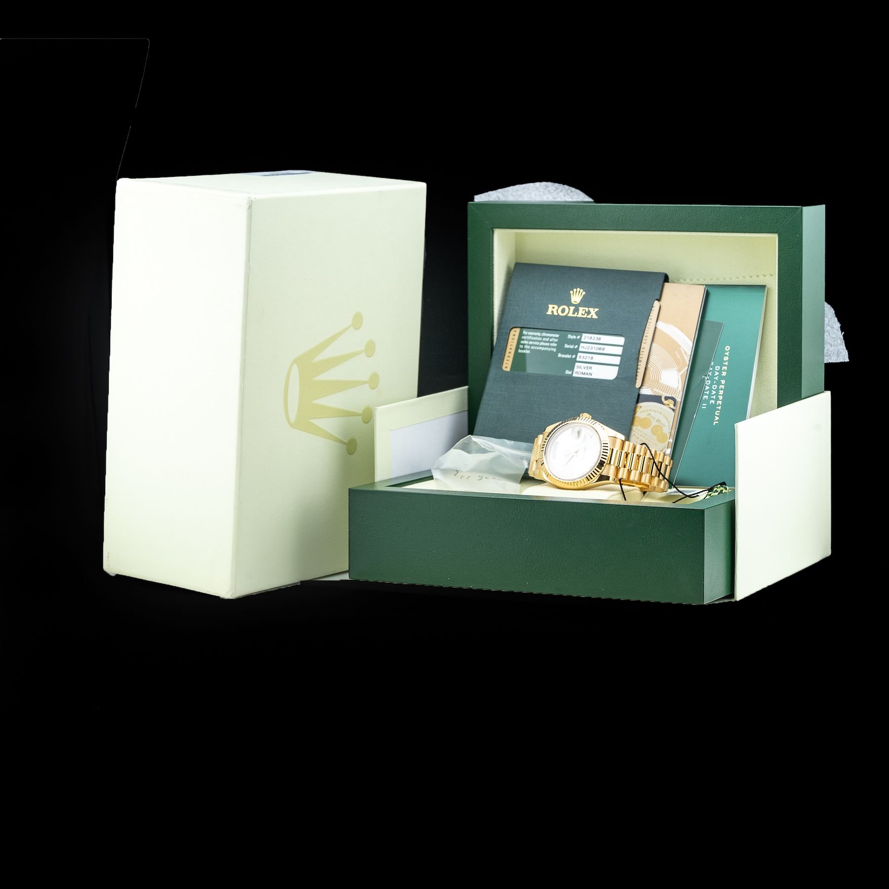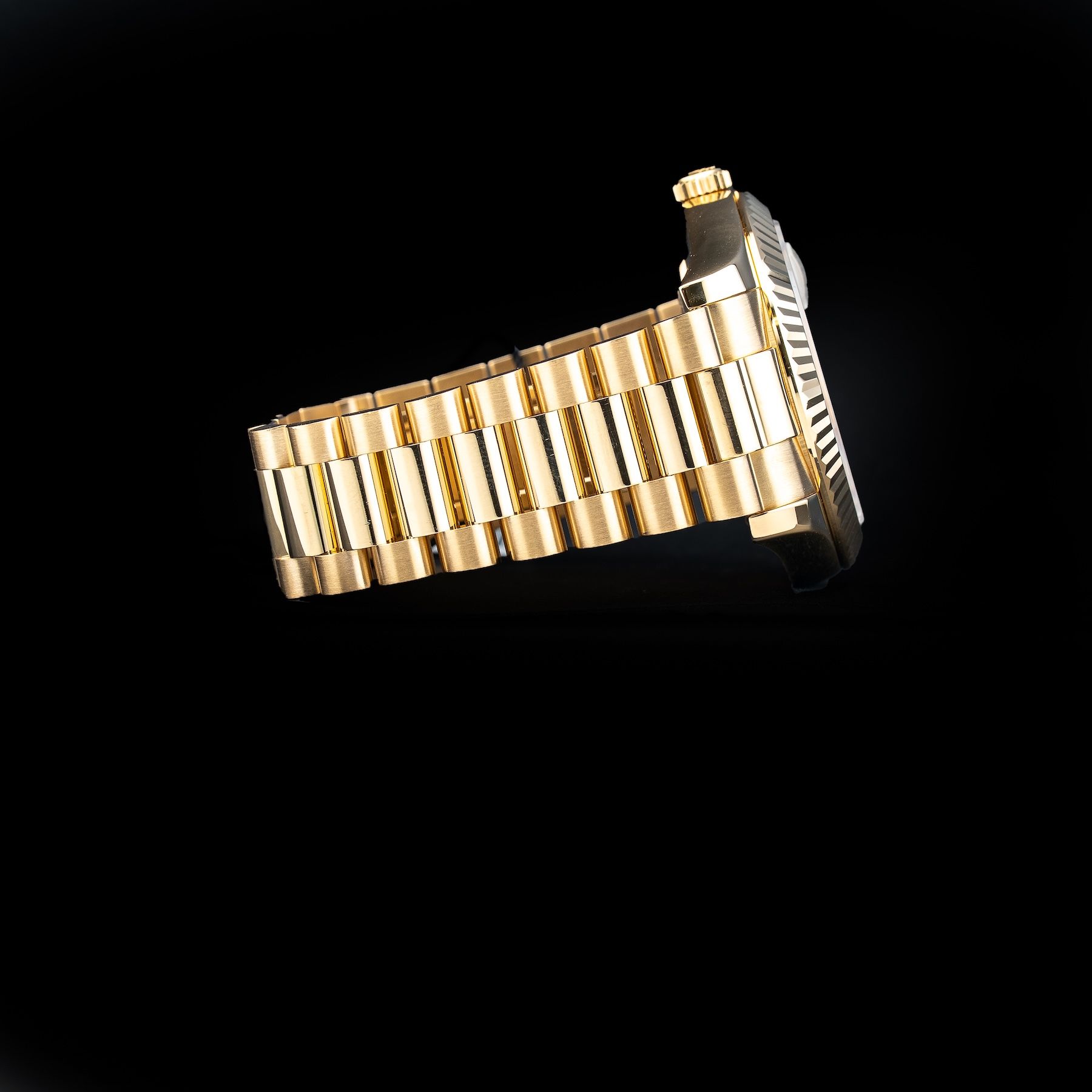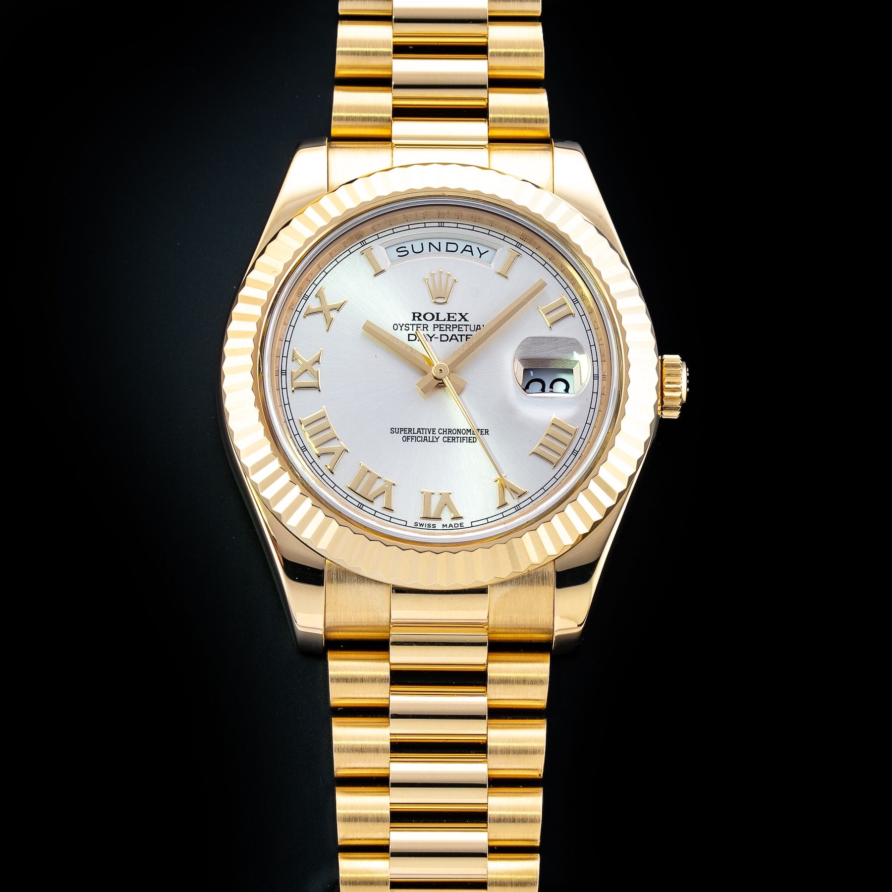 This Rolex 218238 Day-Date II is in GREAT condition. This watch includes its Original Box, Original Papers. This Rolex watch has been fully authenticated and certified by a 3rd party organization. You’ll receive the certificate of authenticity with your purchase. Please note, the photos shown are of the actual watch you will receive.