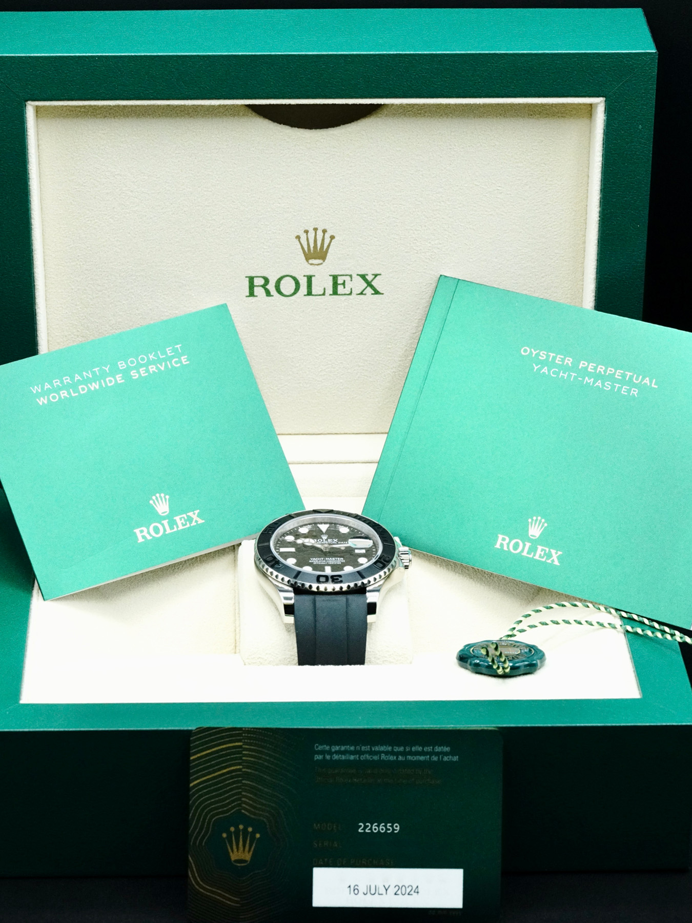 This Rolex 226659 Yacht-Master 42 is in EXCELLENT condition. This watch includes its Original Box, Original Papers and Warranty Card Dated for July 16th, 2024. This Rolex watch has been fully authenticated and certified by a 3rd party organization. You’ll receive the certificate of authenticity with your purchase.