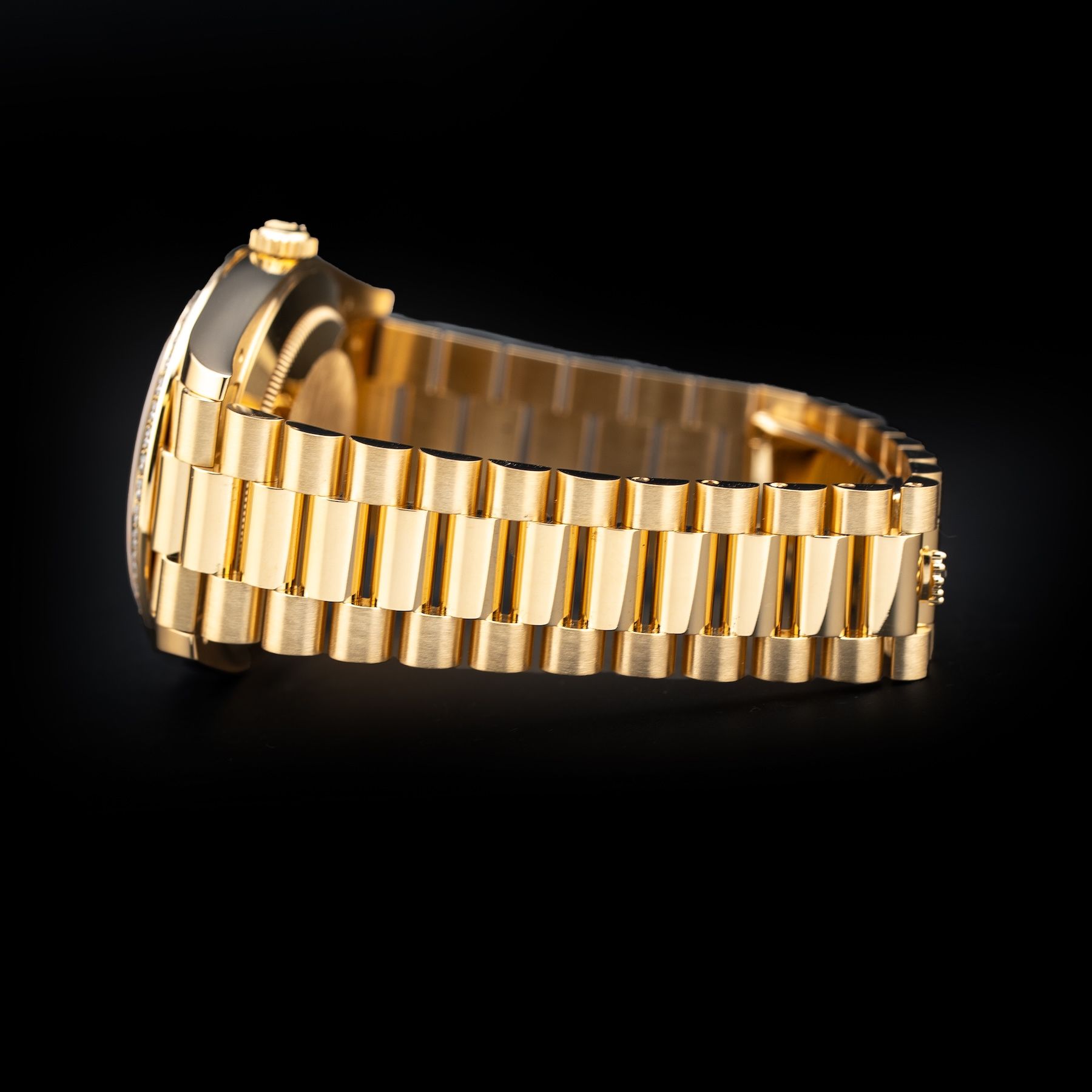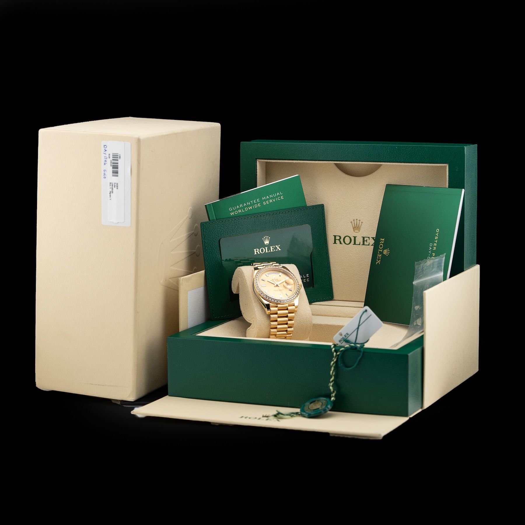 This Rolex 228348RBR Day-Date 40 is in GREAT condition. This watch includes its Original Box, Original Papers and Warranty Card Dated 8/31/2021. This Rolex watch has been fully authenticated and certified by a 3rd party organization. You’ll receive the certificate of authenticity with your purchase. Please note, the photos shown are of the actual watch you will receive.