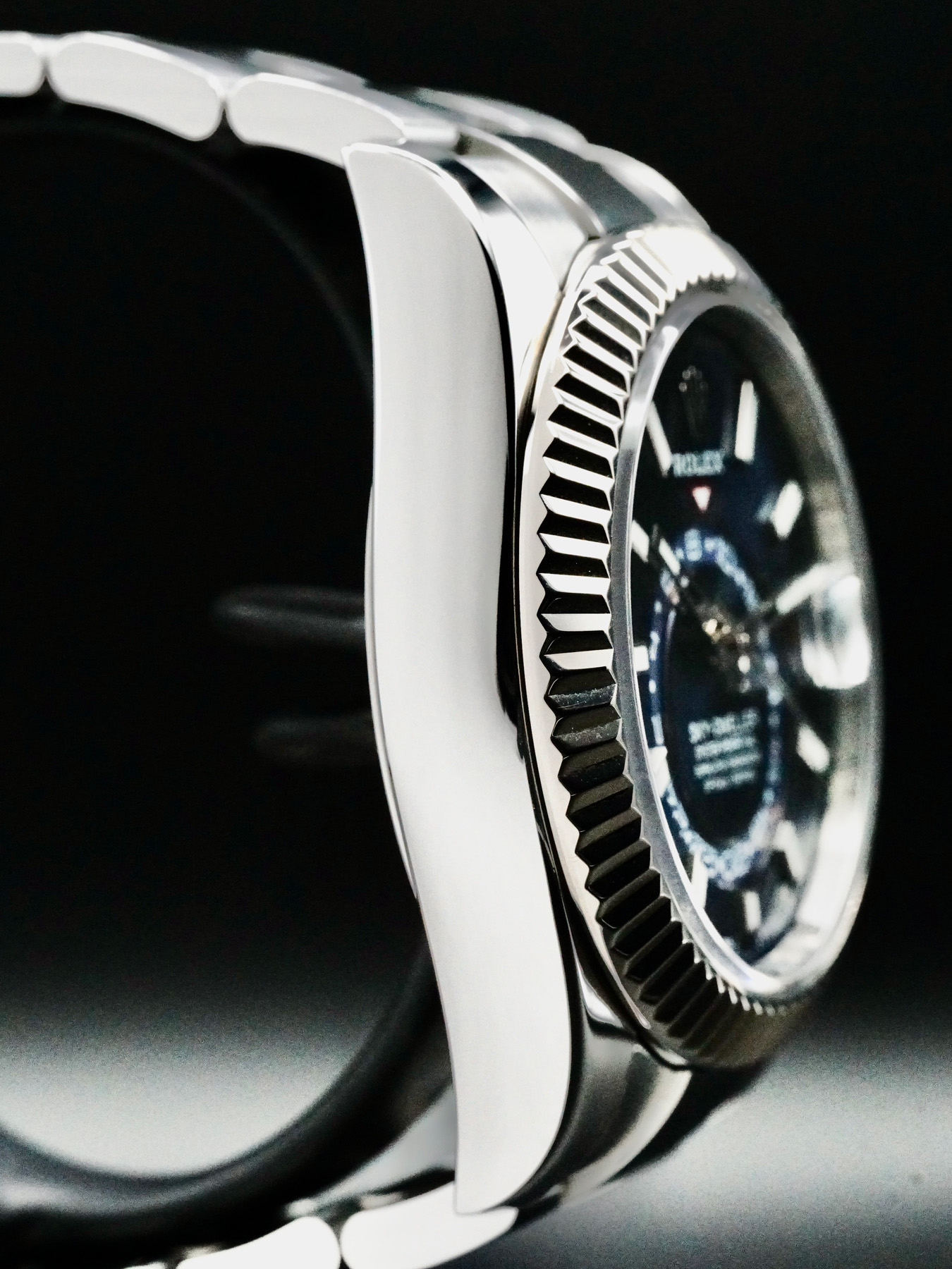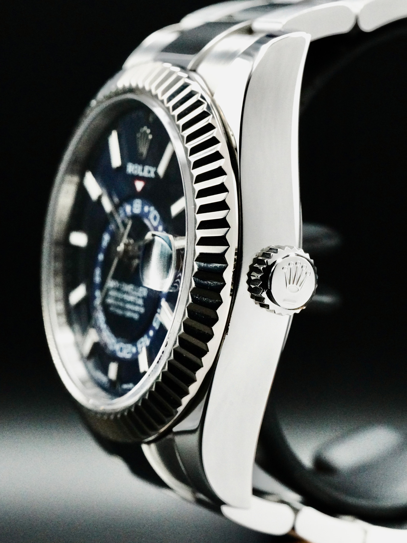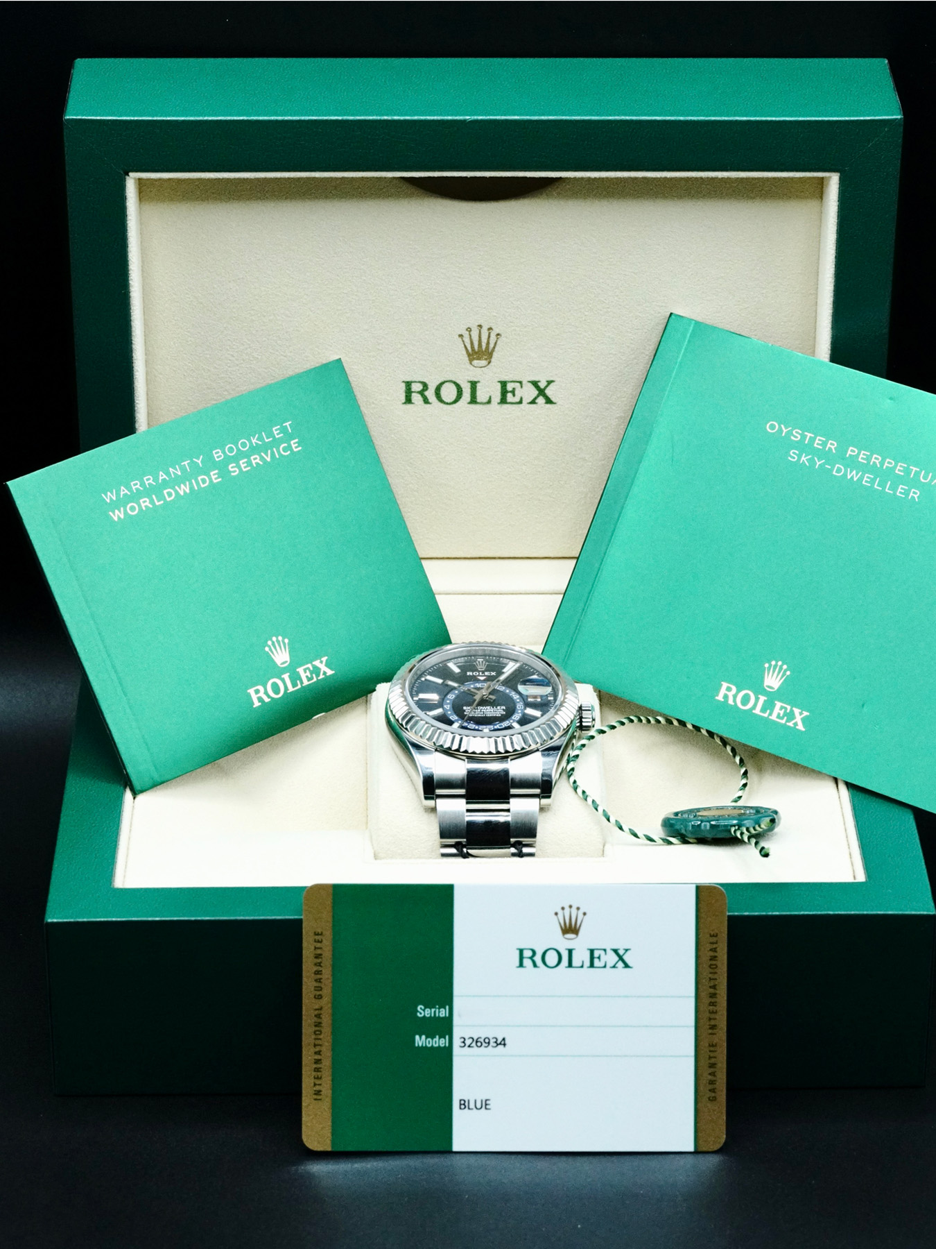 This Rolex 326934 SkyDweller is in GREAT condition. This watch includes its Original Box and Warranty 3/6/18. This Rolex watch has been fully authenticated and certified by a 3rd party organization. You’ll receive the certificate of authenticity with your purchase.