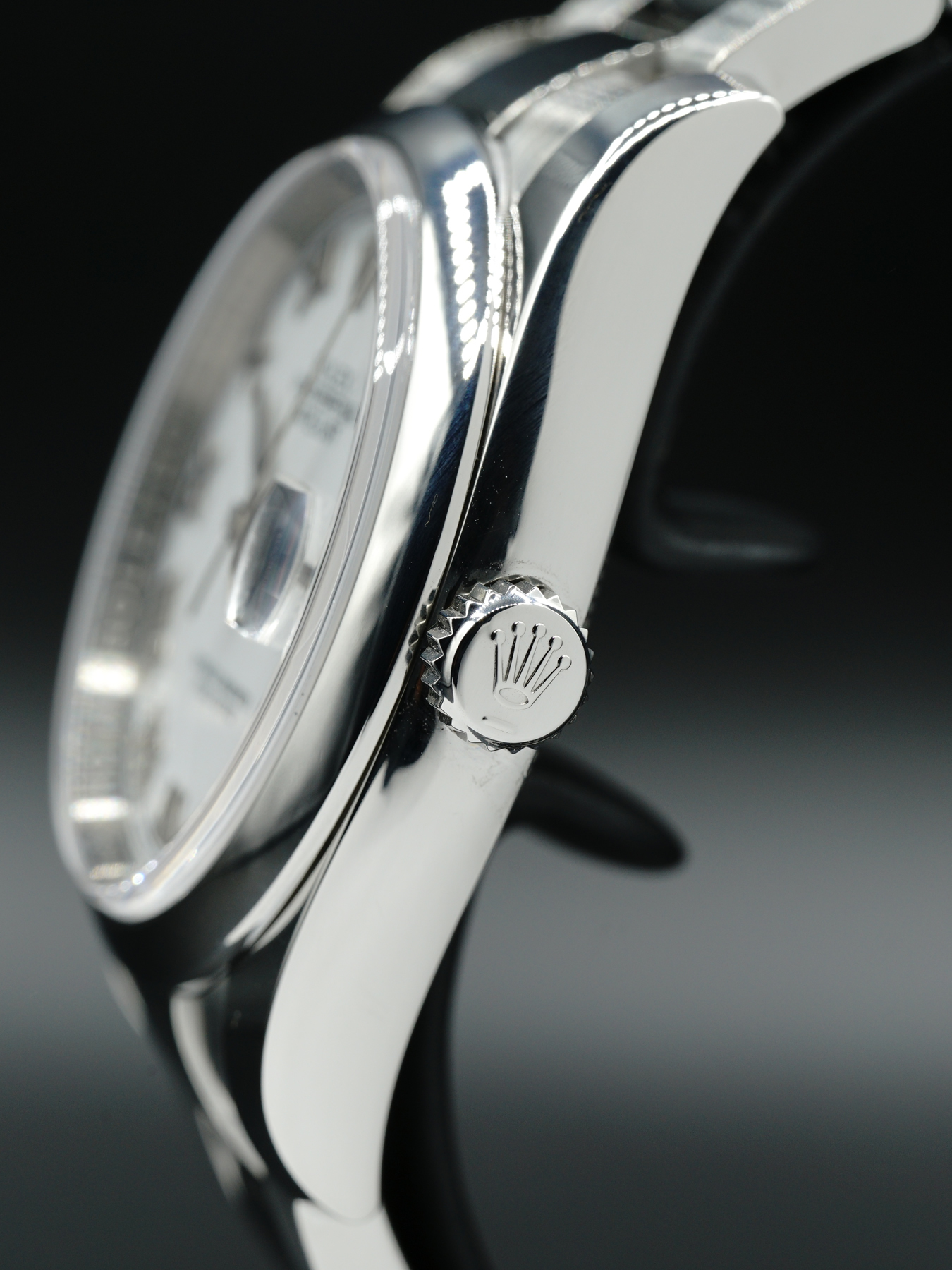 This Rolex 116200 Oyster Perpetual Date is in EXCELLENT condition. This edition of the legendary Rolex Oyster Perpetual Datejust is presented in superior 904L grade Oystersteel. This metal finish is forged in-house using the best metals the world has to offer. 116200 also features a sporty three-link Oyster bracelet, smooth bezel, sapphire crystal, and classy white dial. This watch includes its original box, papers, and international guarantee dated for April 2019.