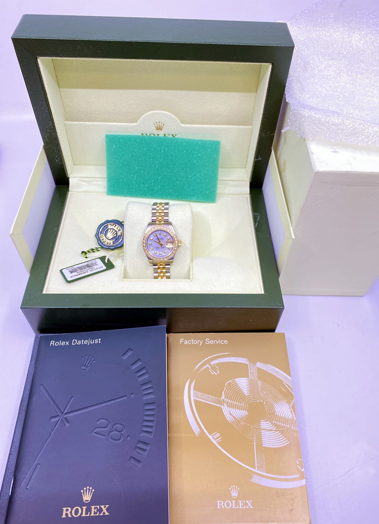 Excellent condition, it has boxes, papers, diamonds bezel and indexes, Mother of Pearl dial.