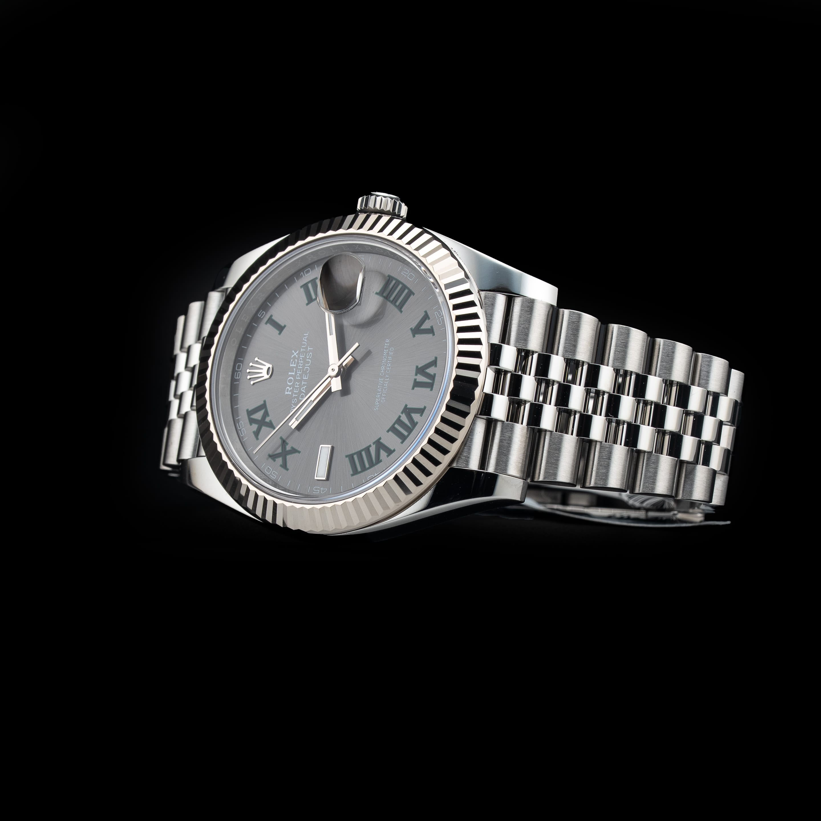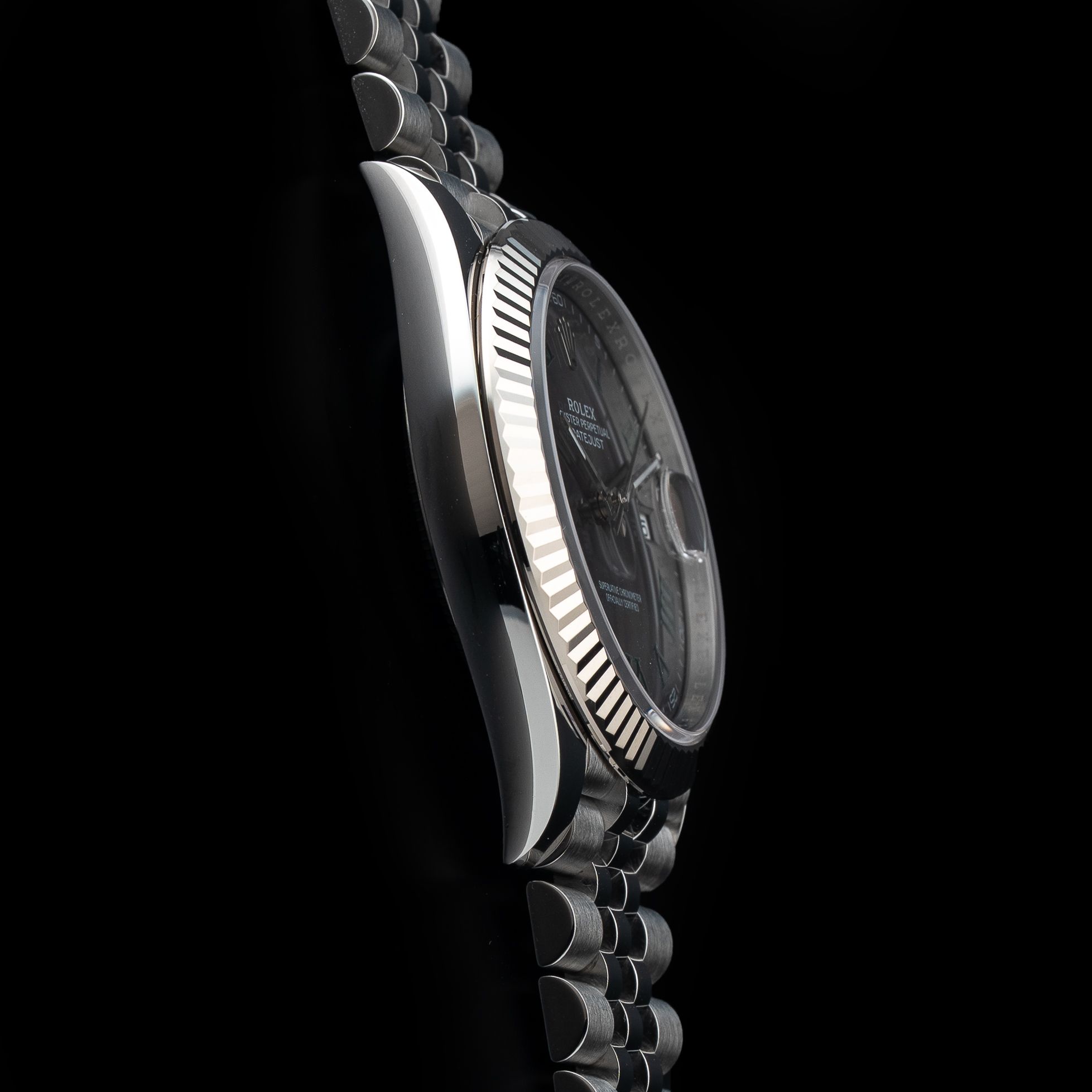This watch features a 41mm oystersteel and white gold case on oystersteel bracelet. This watch also sports a slate dial. Powered by a perpetual, mechanical, self-winding movement. Water resistance up to 100 meters.