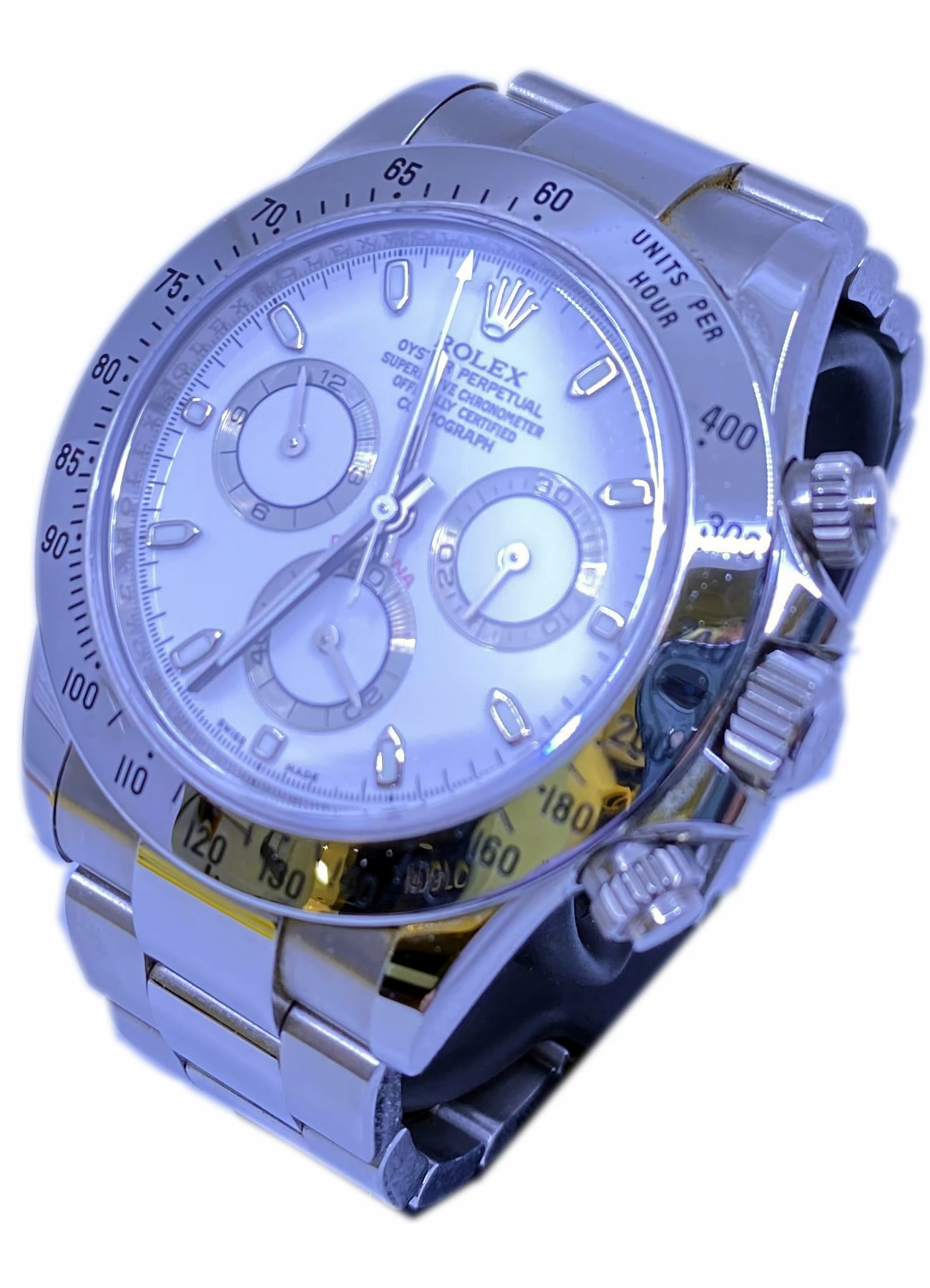 - This timepiece features a 40mm steel case paired with a high quality steel bracelet. It showcases a distinctive white dial and is powered by a precise automatic winding movement. The watch is designed with a water resistance of up to 100m.