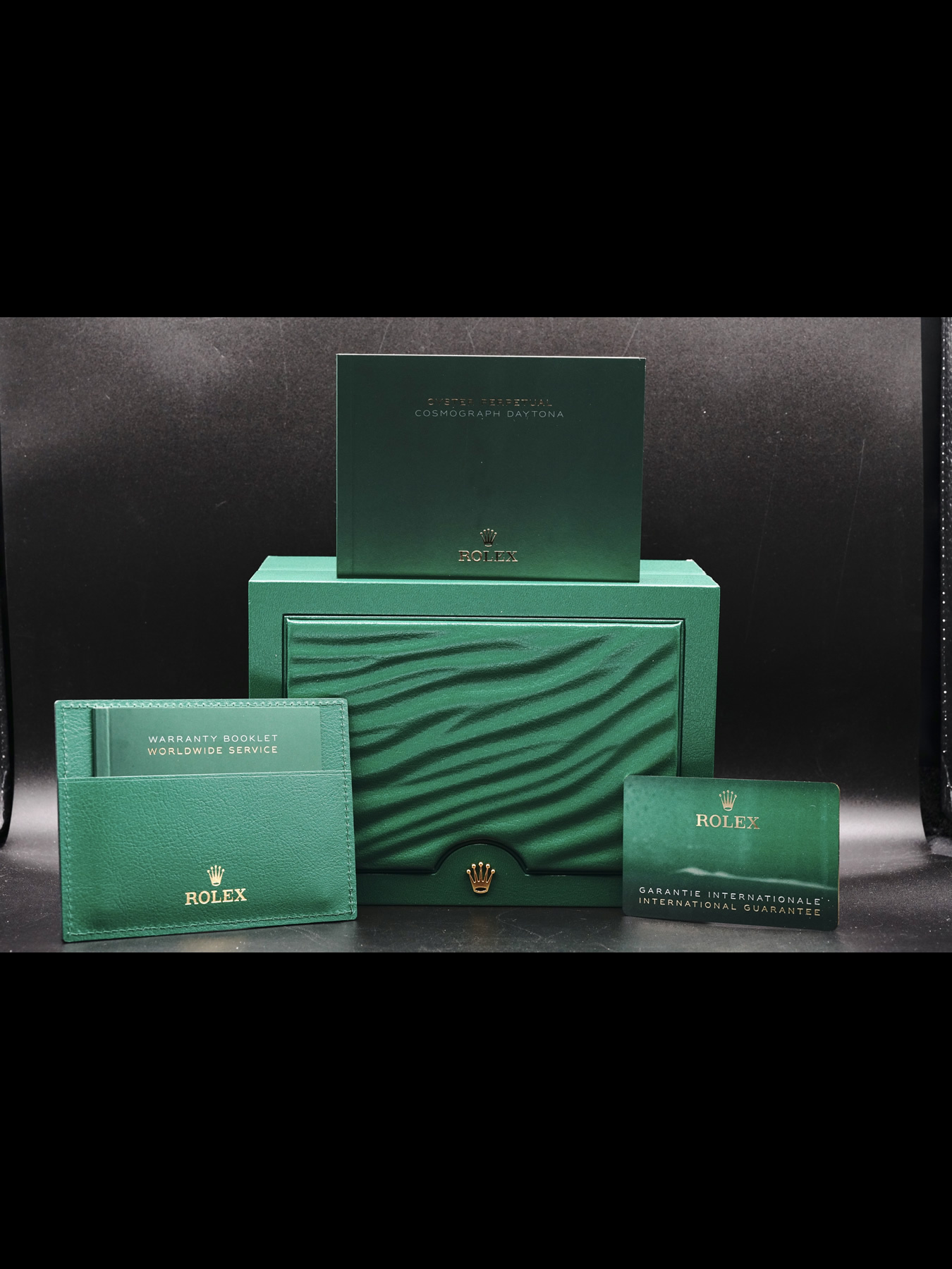 This Rolex Cosmograph Daytona is in EXCELLENT condition. This watch includes its original box, user manual, warranty booklet, and international guarantee dated for 2022.